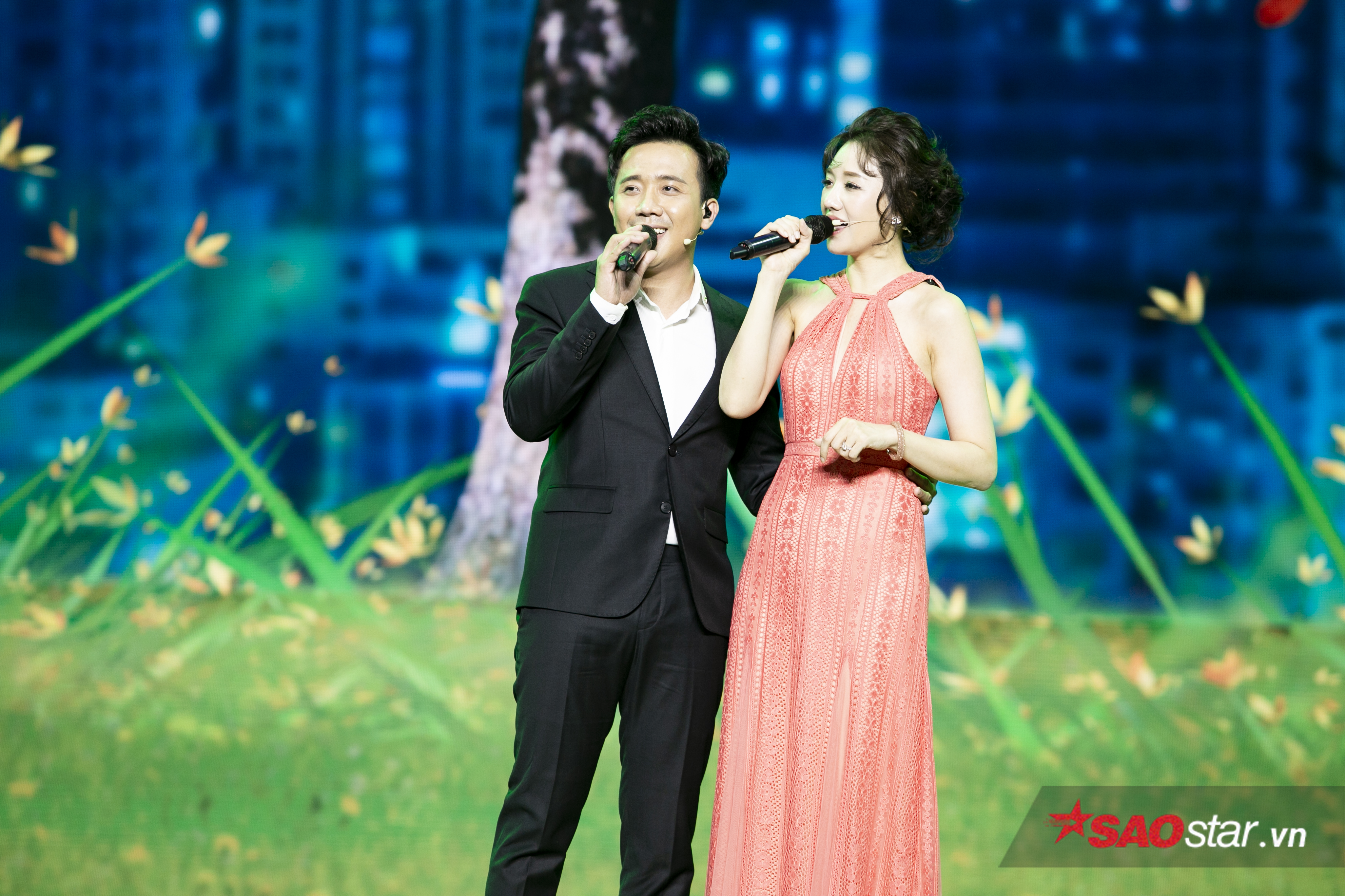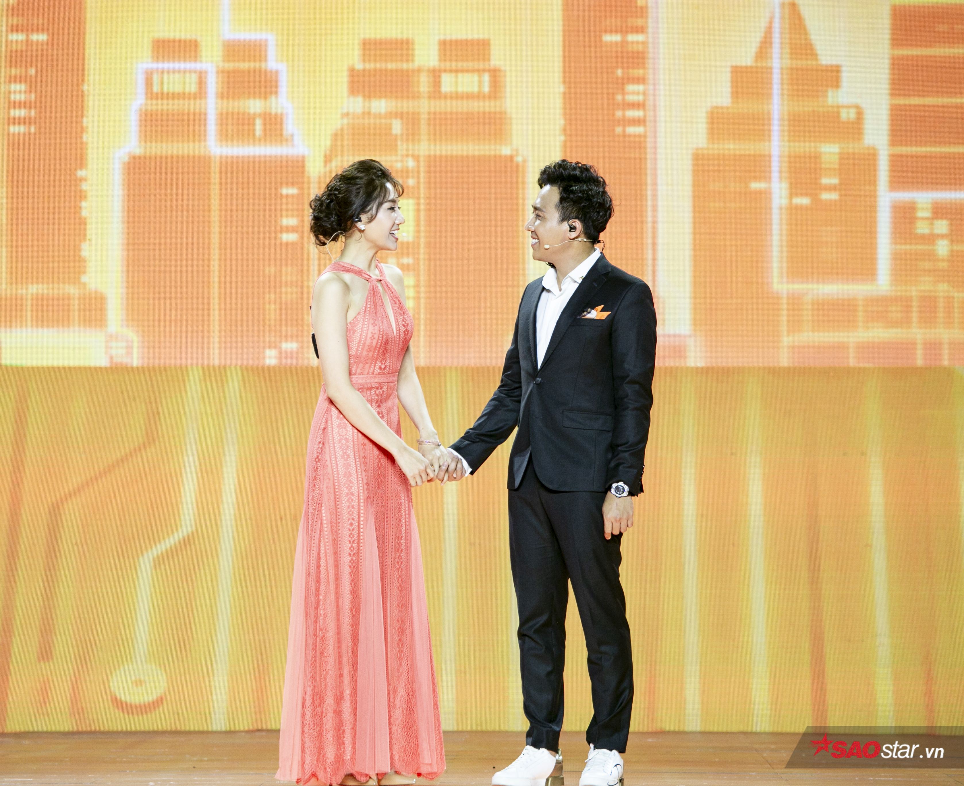 Cũng trong đêm nhạc, khán giả Hà Nội còn được thưởng thức màn kết hợp của cặp vợ chồng Trấn Thành - Hari Won.