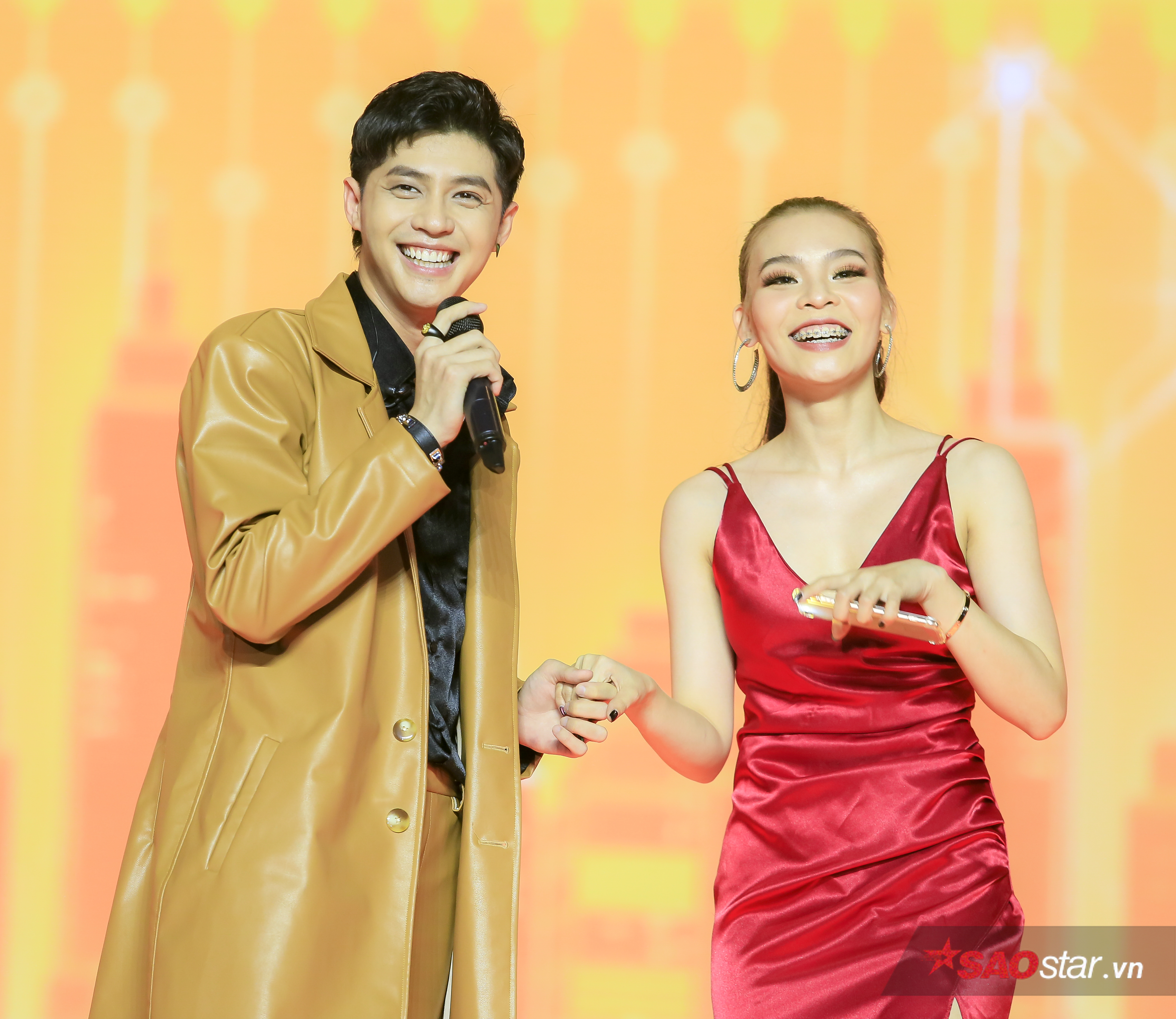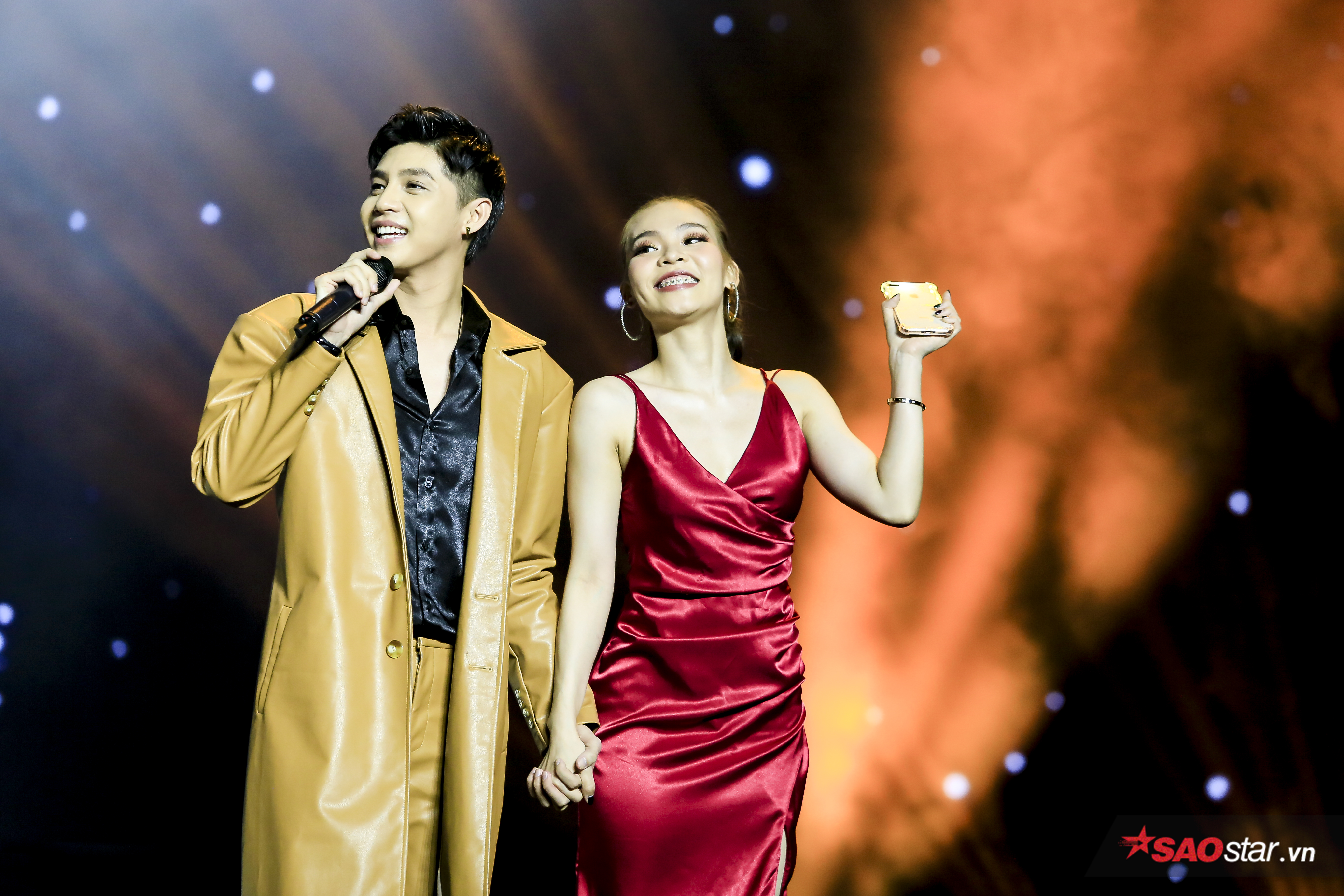 Nam ca sĩ thân thiện nắm chặt tay cô nàng không rời nửa bước.