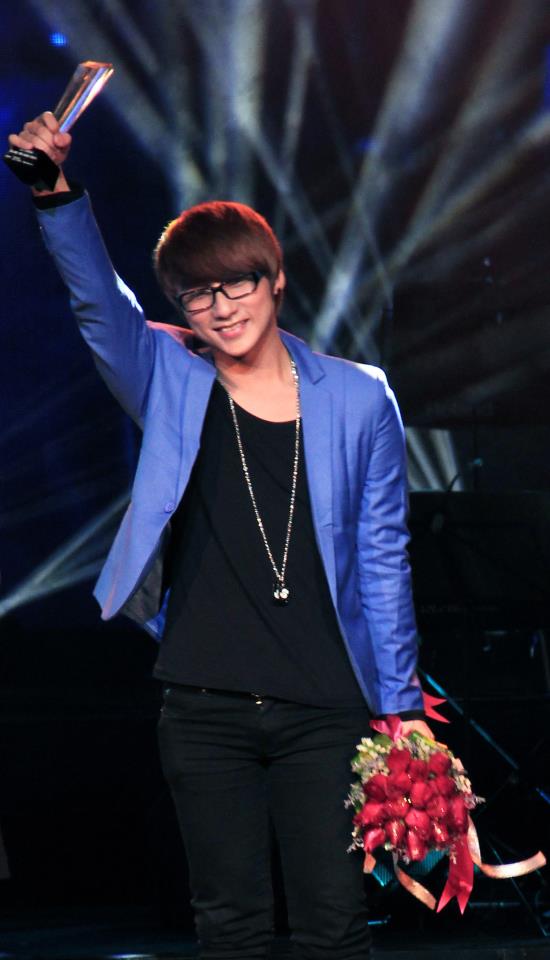 Sơn Tùng M-TP trên sân khấu nhận giải của chương trình Bài hát yêu thích.