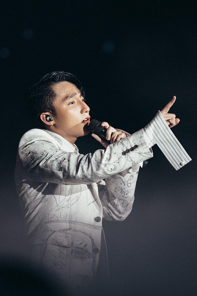 Dù trời đổ mưa nhưng nam ca sĩ vẫn hòa mình cùng khán giả.