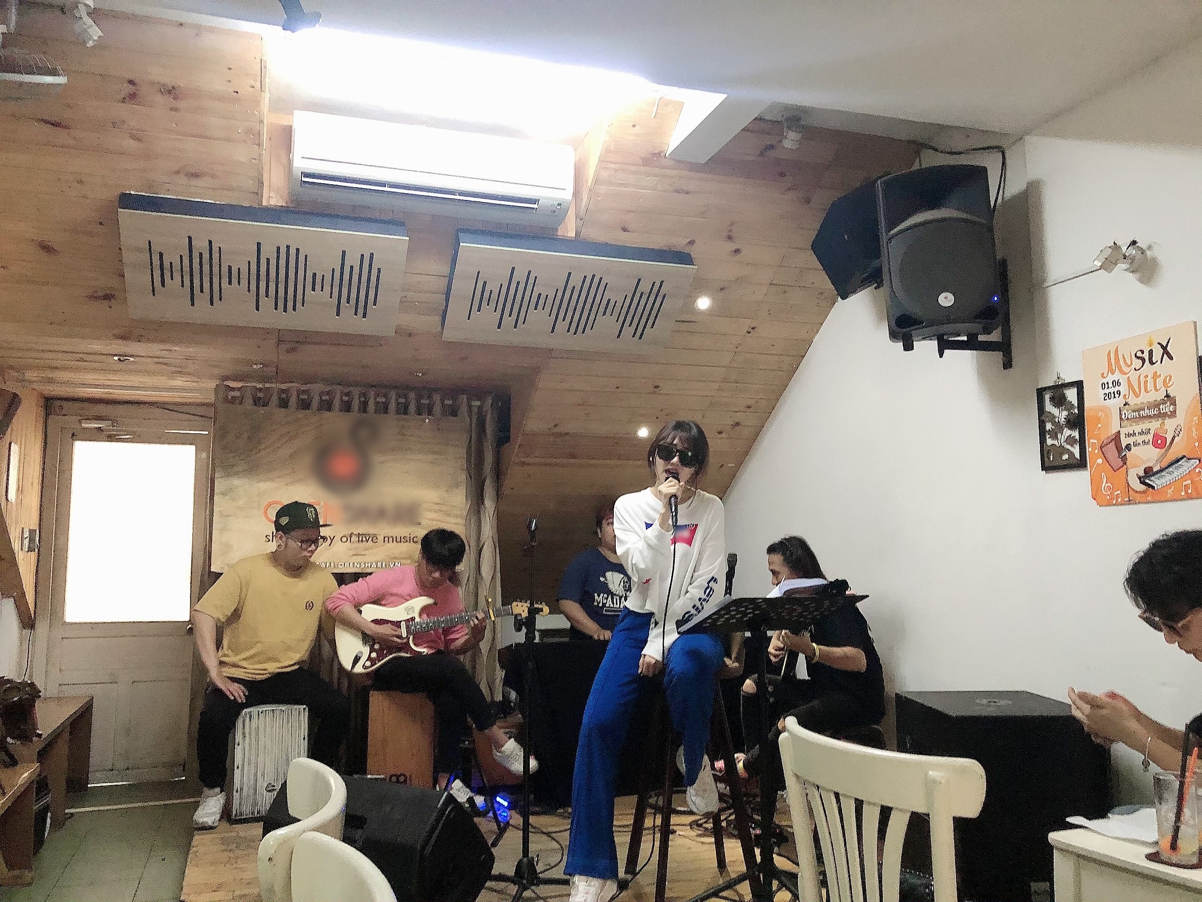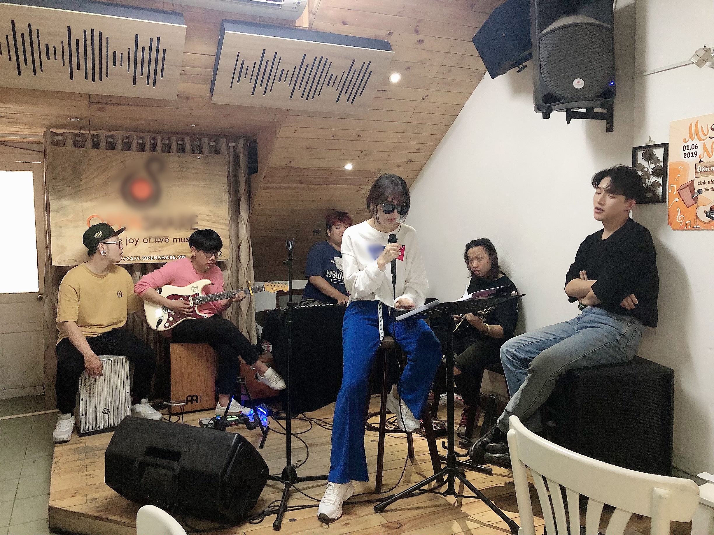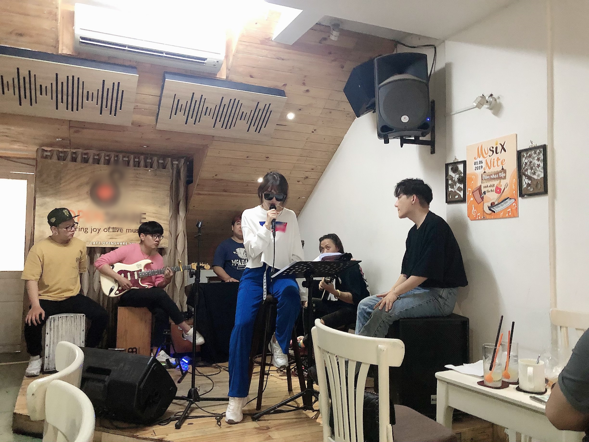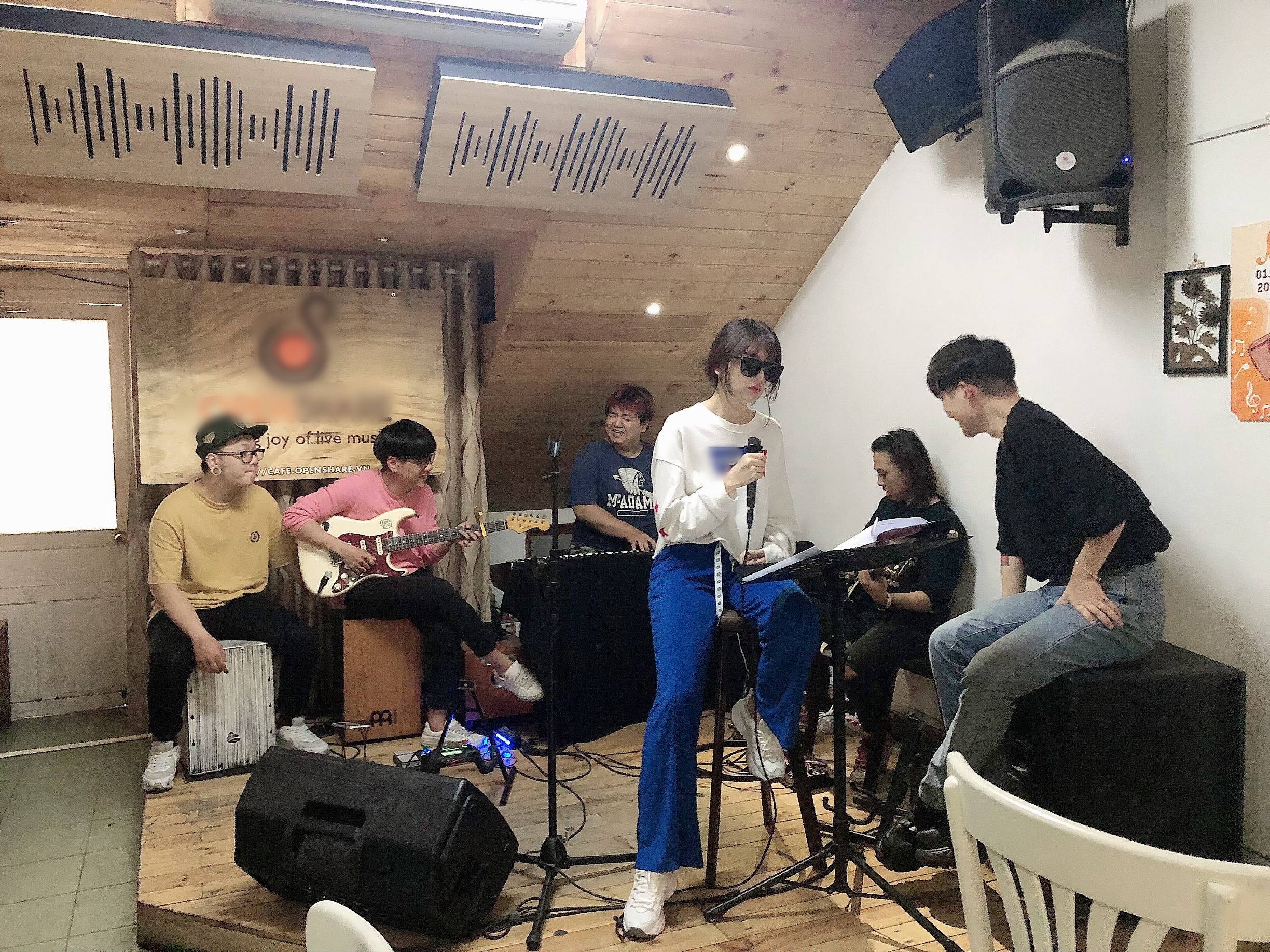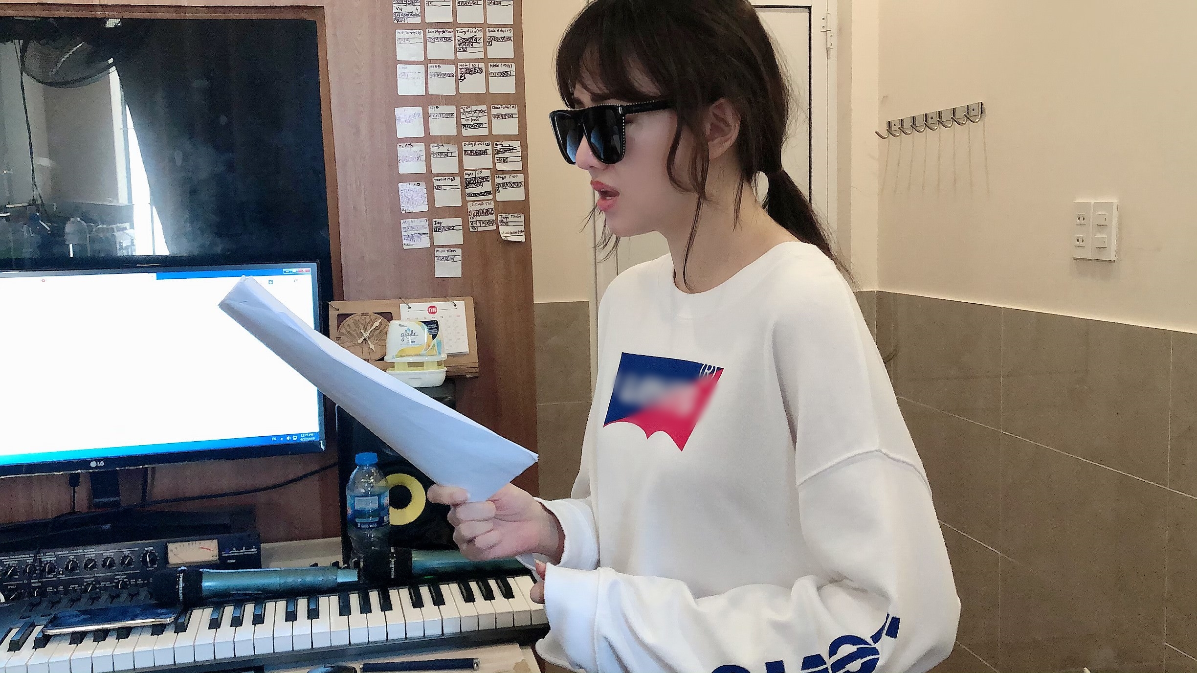 Hari Won trong buổi tập luyện giữa đêm cho concert cùng ban nhạc.