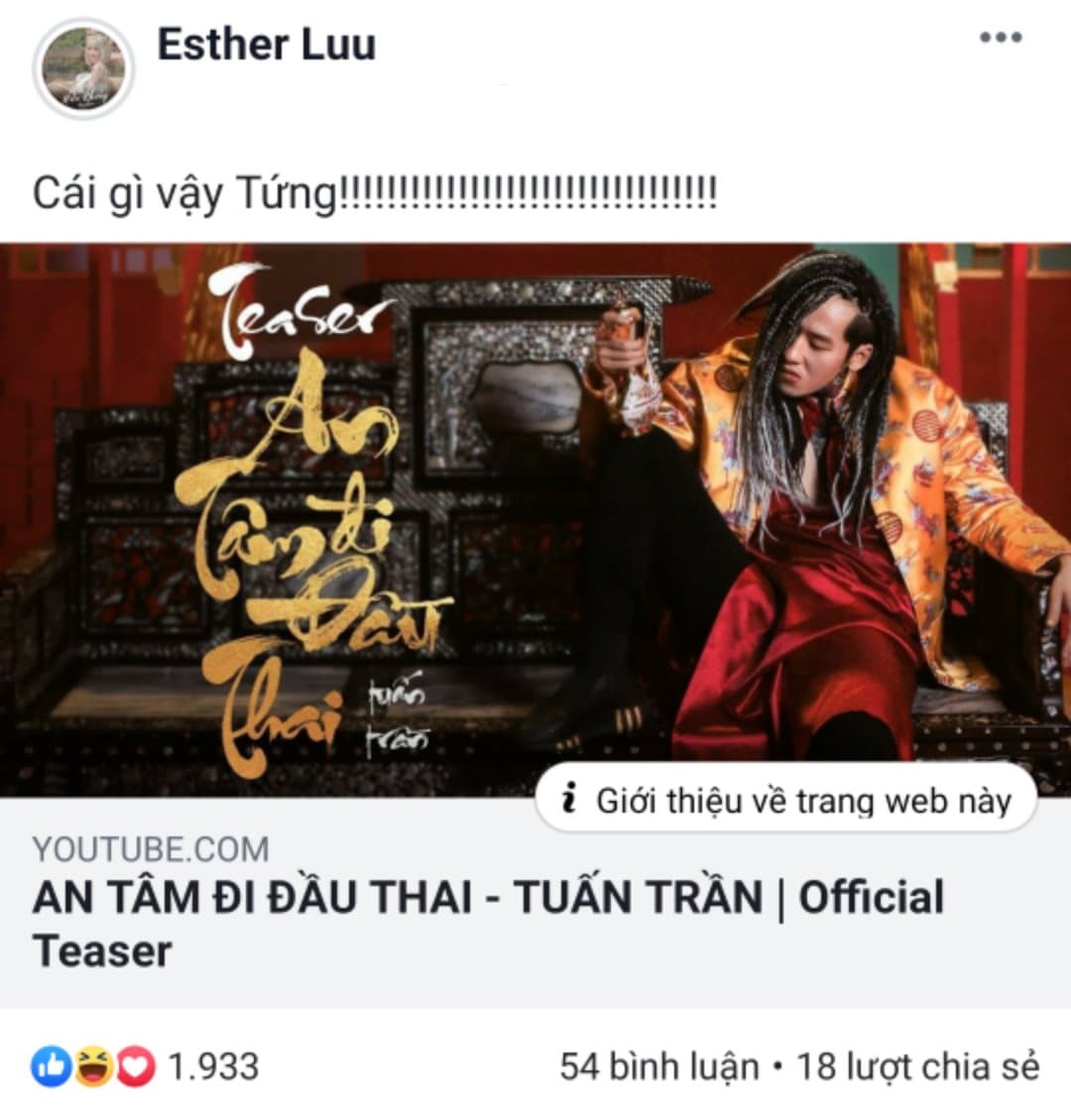 Trước việc Tuấn Trần “lấn sân” ca hát, người bạn thân của anh là Hari Won tất nhiên cũng không thể giấu được sự bất ngờ. Trên trang Facebook cá nhân, Hari Won đã chia sẻ đoạn teaser ca khúc An tâm đi đầu thai của Tuấn Trần với dòng caption đầy rẫy sự hoang mang: “Cái gì vậy Tuấn?“. Dường như chính bản thân Hari Won cũng không thể ngờ được một ngày nào đó người bạn thân của mình lại dám “chơi lớn” như vậy.