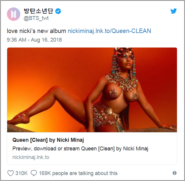 BTS thể hiện sự yêu thích của nhóm đến album mới nhất của Nicki Minaj.