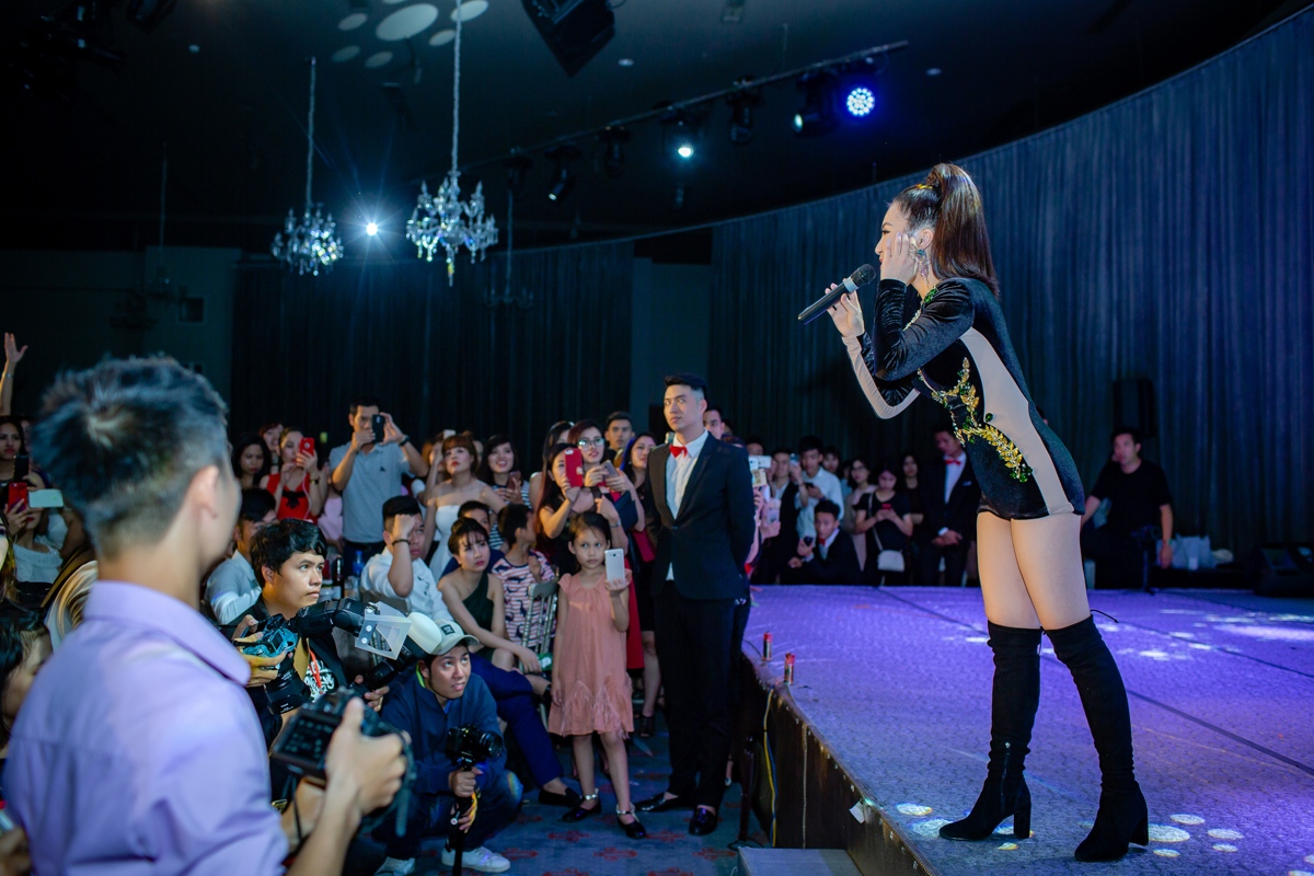 Mới đây, Hương Tràm có mặt tại một sự kiện tại Hà Nội trong niềm mong chờ của khán giả. Người đẹp xuất hiện với bộ cánh tông màu đen cá tính, ôm sát đường nét cơ thể và lấy điểm nhấn bằng những đính kết tinh tế tuyệt vời.