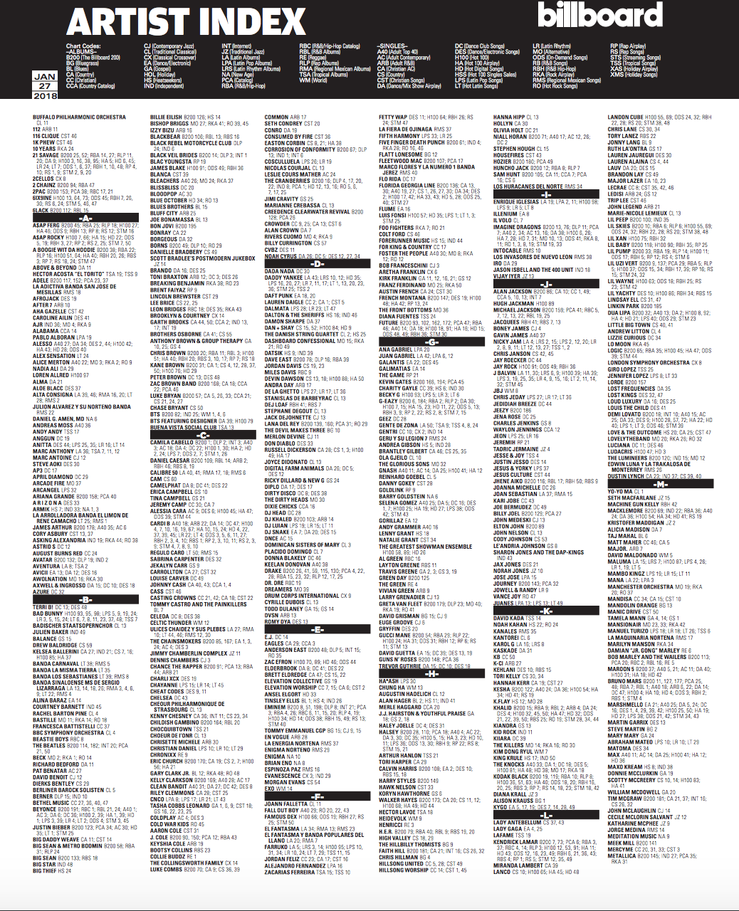 Bảng vàng tháng 1/2018 với những cái tên nổi trội của Billboard.