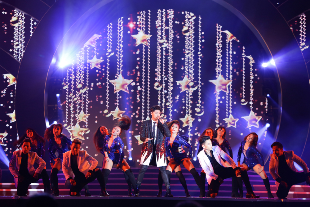 Sân khấu được thiết kế hoành tráng khiến phần biểu diễn của nam ca sĩ càng thêm mãn nhãn.