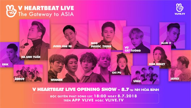 Sự kiện V Heartbeat ngoài sự có mặt của những ngôi sao tên tuổi làng giải trí Hàn Quốc như WINNER và Jung Hae In thì loạt ca sĩ đình đám Việt Nam như Hà Anh Tuấn, Noo Phước Thịnh, Vũ Cát Tường, Slim V, Chi Pu, Erik, Hòa Minzy, Uni5 và tân binh Zero9 cũng sẽ xuất hiện hứa hẹn làm “nóng” không khí chương trình.