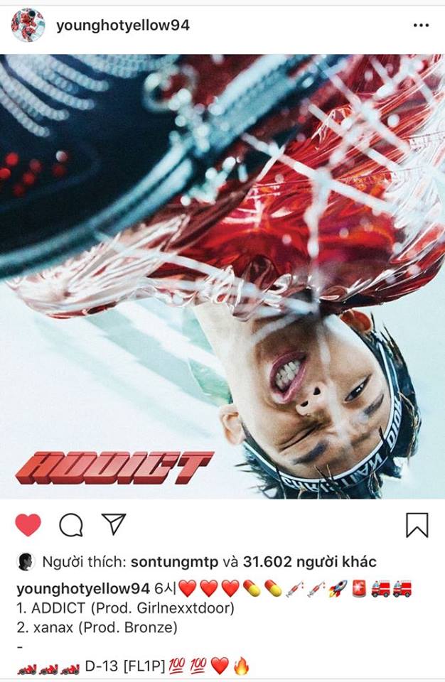 Cụ thể, trong tài khoản của rapper người Hàn Quốc Sik-K, anh đã đăng tải một bức hình giới thiệu sản phẩm âm nhạc mới của mình. Sẽ chẳng có gì đáng nói khi anh chàng Sơn Tùng nhà ta lập tức vào bình luận vô cùng phấn khích!