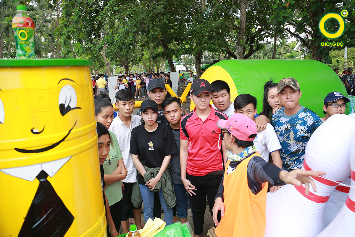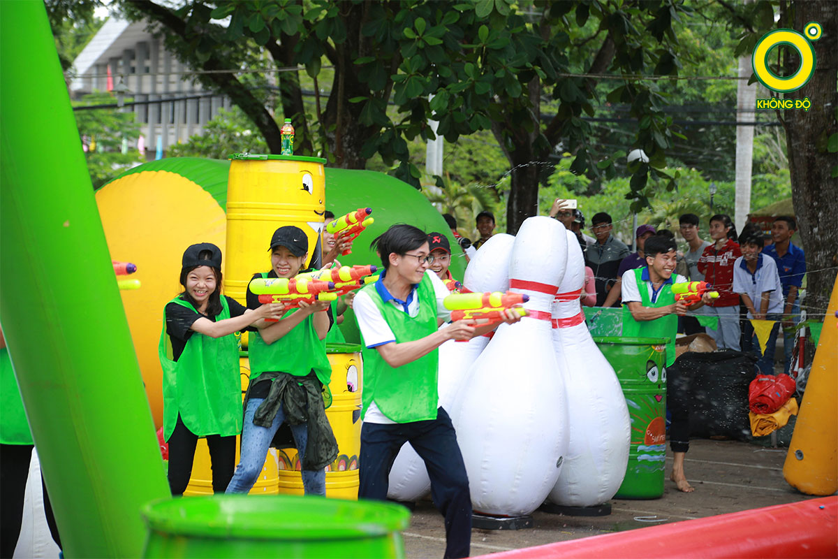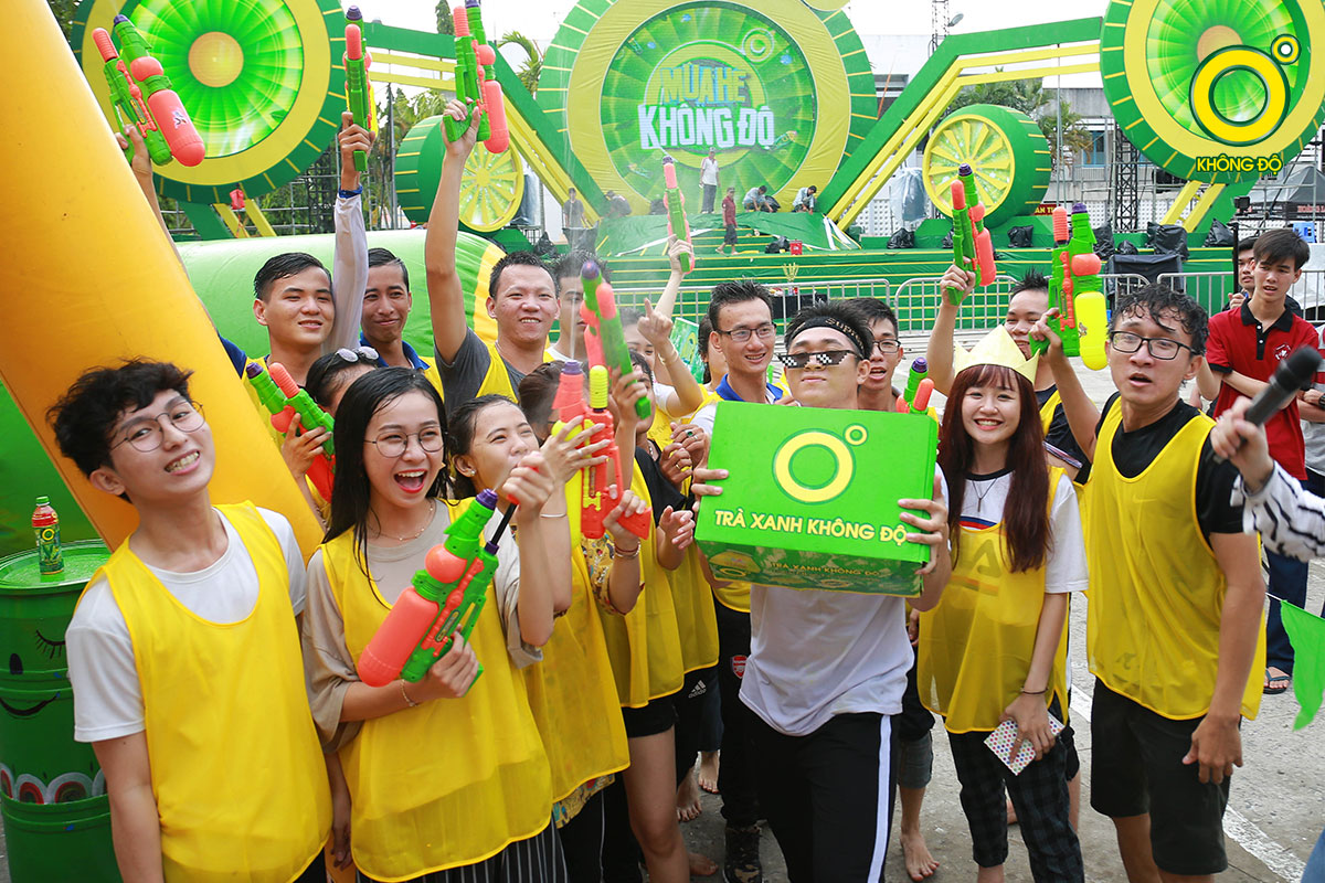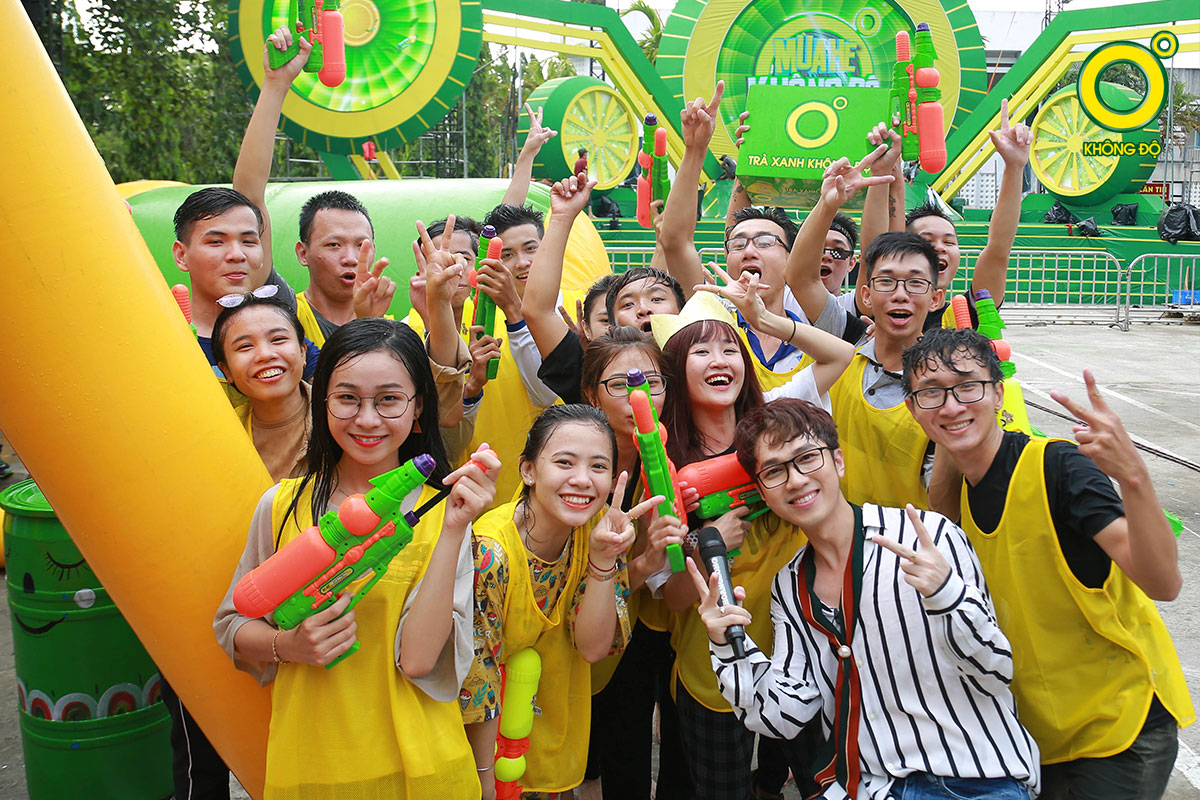 Các bạn sinh viên tại TP Cần Thơ khi được chia làm 2 đội bắn súng nước đối kháng theo quy định từ quản trò MC Minh Xù. Đội thắng cuộc phải thu được các chai Trà xanh không độ nằm tại vị trí chiến lược của đối thủ.