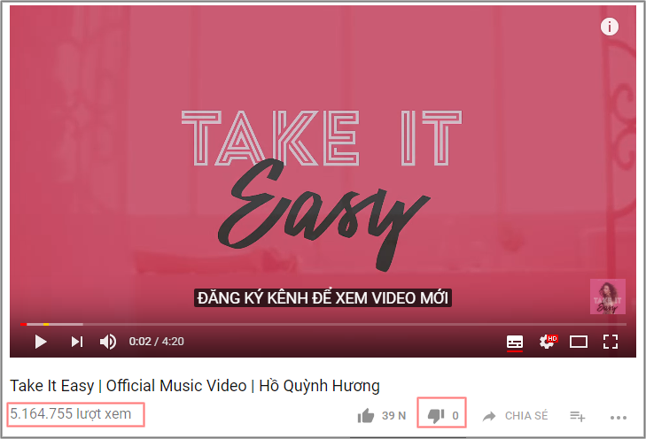 3 tháng sau, những tưởng mọi chuyện đã êm xuôi thế nhưng “số nhọ” vẫn cứ “đu bám” Hồ Quỳnh Hương khi một lần nữa cô được “gọi tên” trong câu chuyện “dở khóc dở cười” khác. Mới đây nhất, nhiều khán giả bỗng phát hiện ra lượng dislike của Take It Easy bỗng “không cánh mà bay” từ khi nào. Thời điểm vài ngày sau khi ra mắt, MV này chỉ có 7,3 ngàn lượt thích nhưng lại có đến 5 ngàn lượt dislike. 3 tháng sau, dù lượt view vẫn tăng nhưng dislike thì đã biến mất.