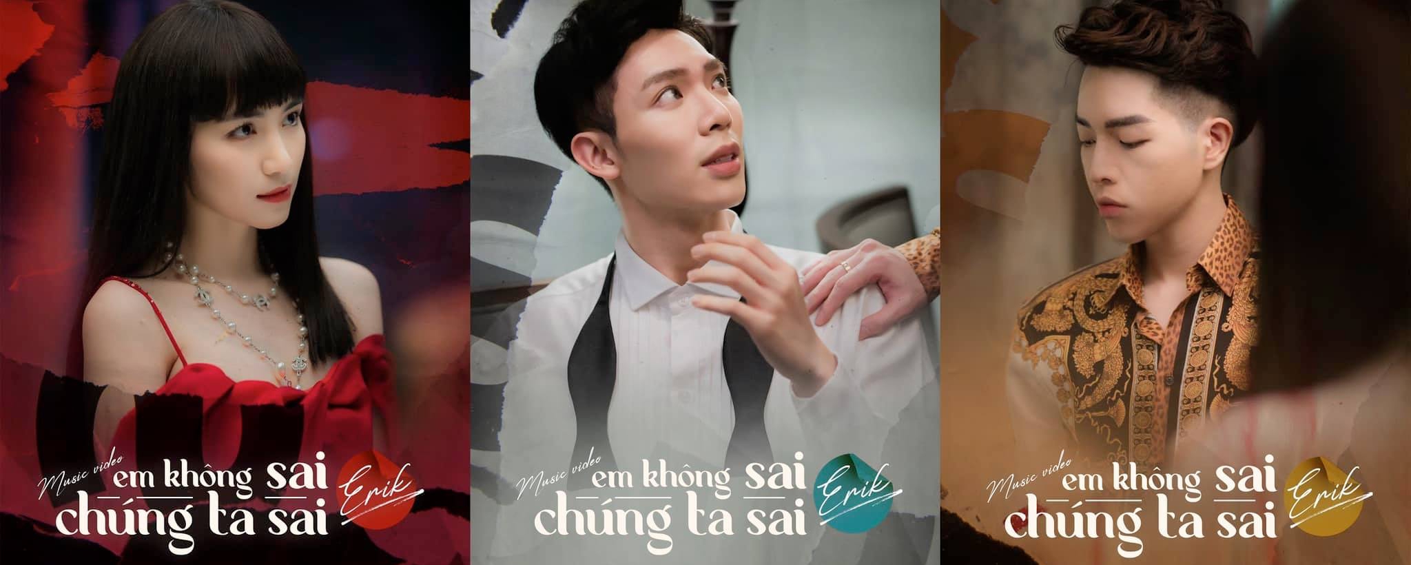 Tối 29/4, sau khi tung hình ảnh nhá hàng mở đường cho sản phẩm âm nhạc mới mang tên Em không sai chúng ta sai thì Erik tiếp tục hé lộ poster các nhân vật tham gia trong MV lần này. Vô cùng bất ngờ khi cả 2 anh lớn chị lớn nhà Hoa dâm bụt là Đức Phúc và Hoà Minzy đều sẽ góp mặt cùng Erik.