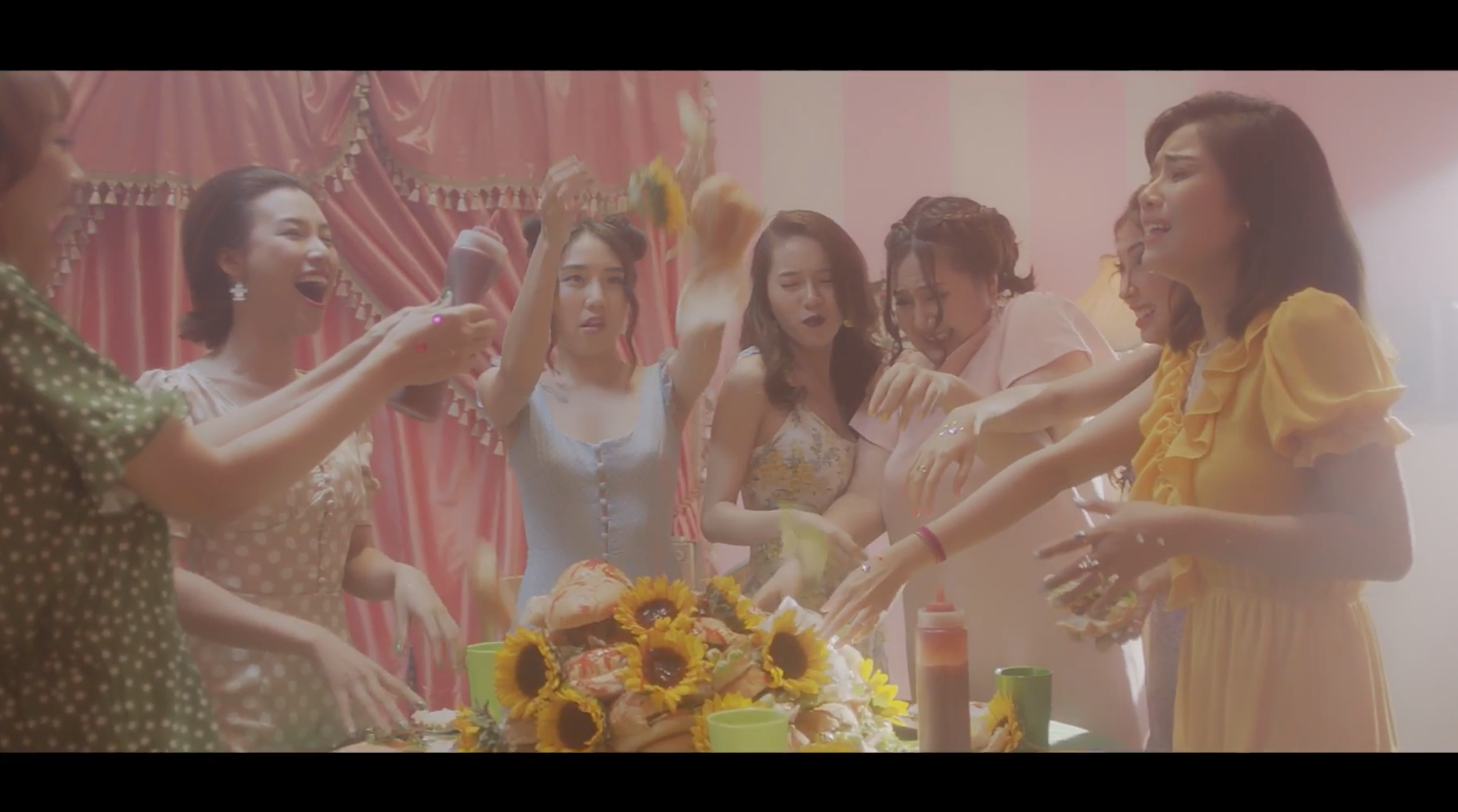 Đúng như tên gọi của ca khúc, khán giả có thể dễ dàng nhận thấy sự xuất hiện của các cô gái thay vì một nam chính ngôn tình. Tuy nhiên, nhân vật gây chú ý nhất trong 15 giây ngắn ngủi ở teaser là Hoàng Yến Chibi. Cô thể hiện cảm xúc khá khó hiểu. Vừa chạy nhảy quẩy hết mình cùng nhóm Ngựa Hoang nhưng lại ăn liên tục, gương mặt khóc dở mếu dở thay vì vui vẻ, phấn khích như các chị em thân thiết trong nhóm.
