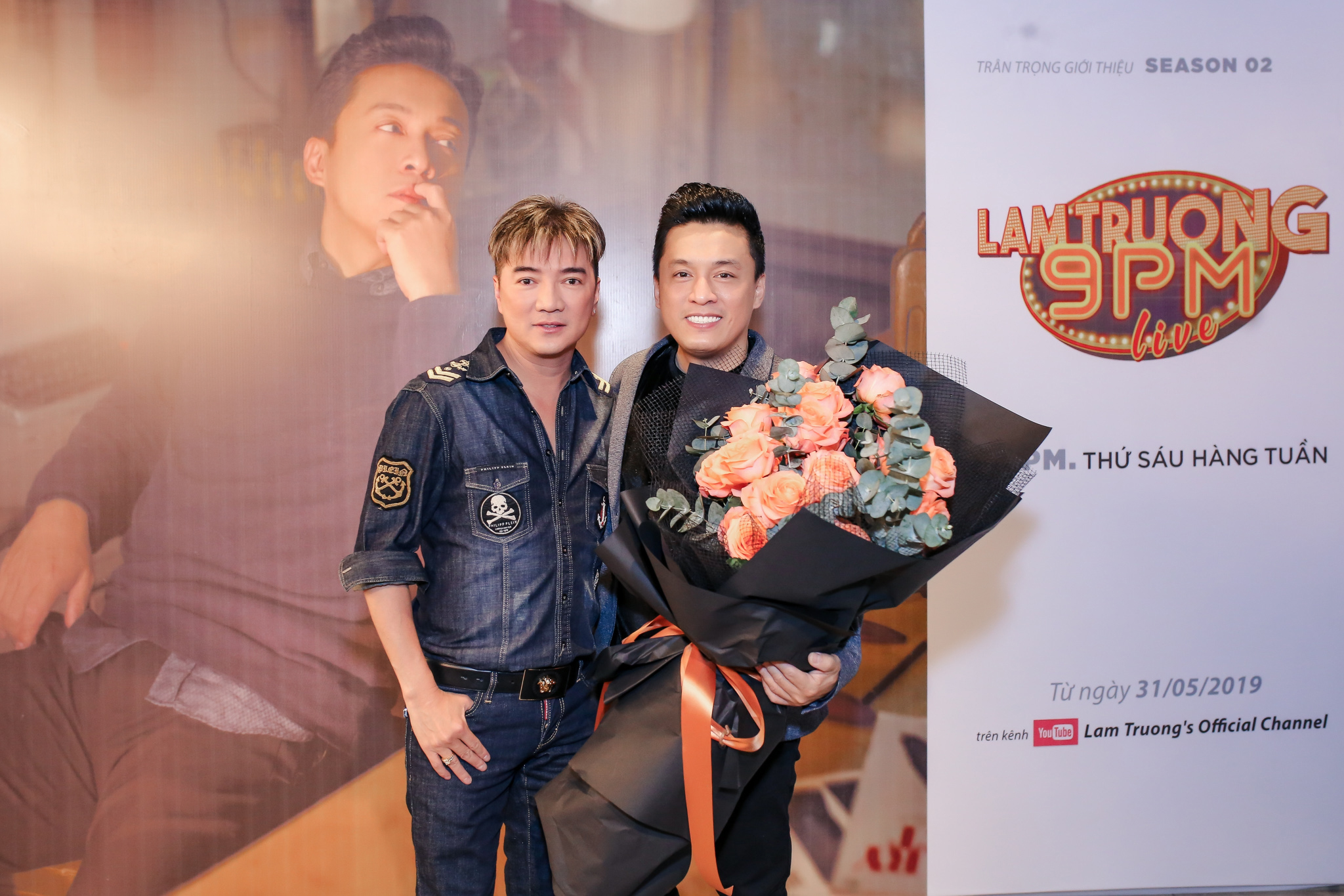 Trong buổi họp báo, nam ca sĩ Đàm Vĩnh Hưng cũng xuất hiện để ủng hộ cho dự án mới của Lam Trường. “Ông hoàng nhạc Việt” không quên dành cho Lam Trường câu hỏi khiến cả khán phòng vô cùng thích thú. Cụ thể, Mr. Đàm chia sẻ: “Khi nãy Hưng có nghe Lam Trường nói khi gặp phải những scandal thì không biết phải đối phó ra sao. Nếu vậy cứ liên hệ với Hưng (cười). Mỗi mùa Lam Trường 9p.m thì Trường làm đều có khách mời như Noo Phước Thịnh, Đông Nhi, chị Hồng Nhung. Vậy mùa nào Trường mới mời Hưng?