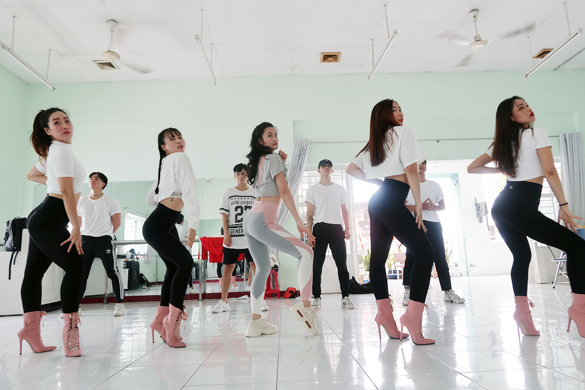 Cận kề ngày lên đường sang Nhật Bản biểu diễn, Đông Nhi đã có những buổi tập luyện ráo riết cùng vũ đoàn cho 2 tiết mục sắp tới. Trên sàn tập, hình ảnh nữ ca sĩ đội nón lá khiến khán giả rất thích thú và chờ đợi.