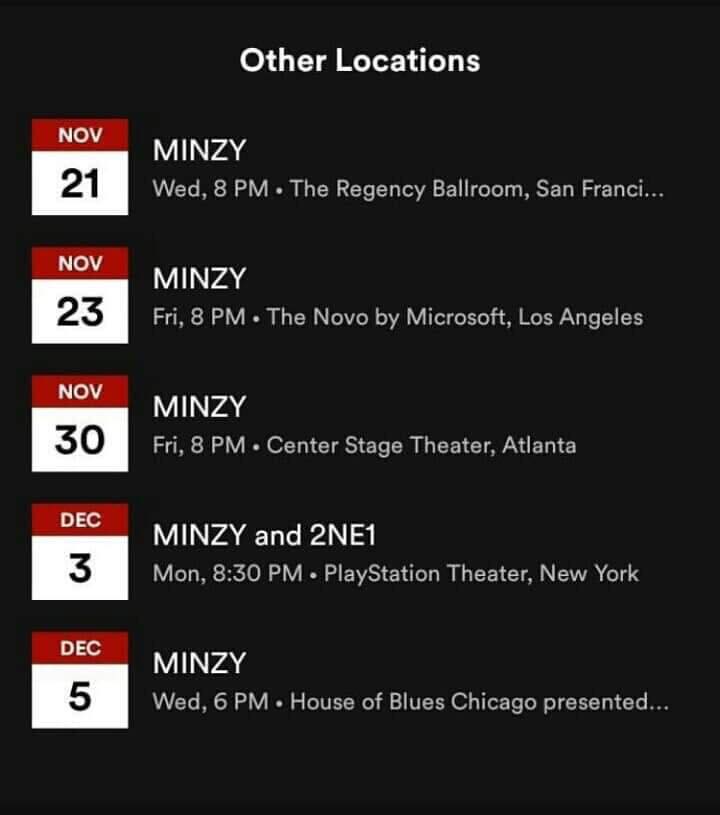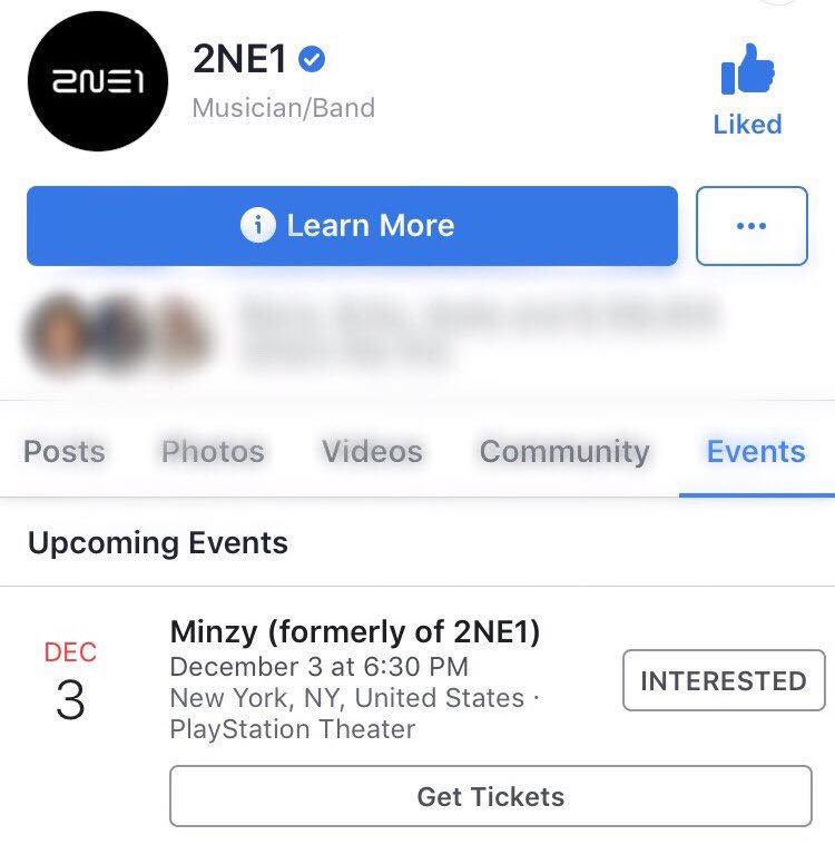 Concert của Minzy hiện đang được xuất hiện trong phần sự kiện của trang facebook 2NE1.