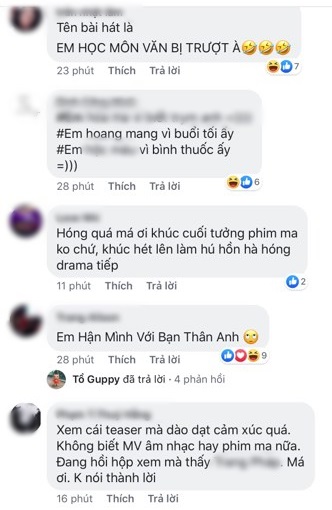 Tuy nhiên, chắc chẳng ai nghĩ được các fan của Hương Giang lại “lầy” như thế nào khi teaser có phần rùng rợn như vậy mà tên ca khúc được dự đoán lại chẳng thể hài hơn. Cụ thể, với việc “dự” đề thi Văn THPT Quốc gia 2019 có phần “bách phát bách trúng” như sáng nay, người hâm mộ của cô đã đoán tên ca khúc có hashtag #EHMVBTA chính là… Em học môn Văn bị trượt à.