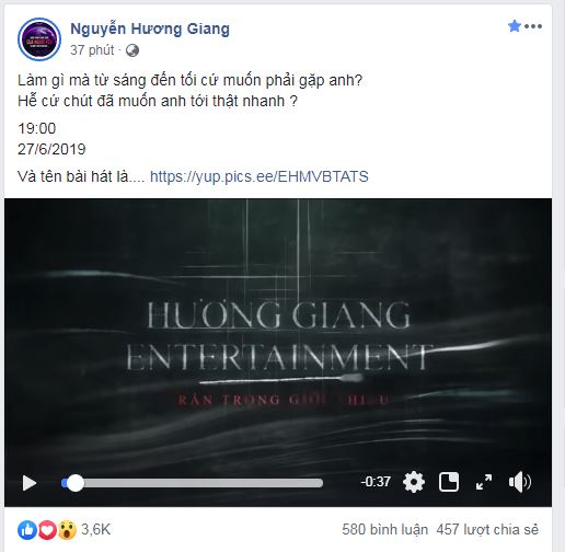 Dòng trạng thái và đoạn teaser trailer được Hương Giang đăng tải.