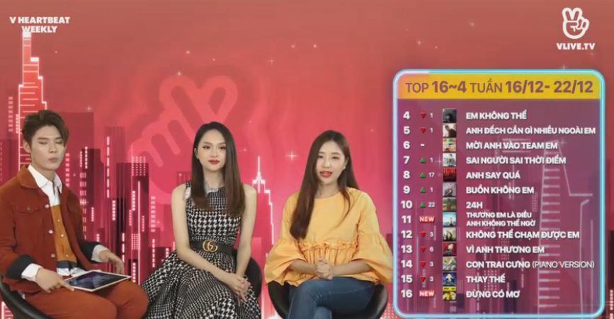 Tối ngày 10/1, đến hẹn lại lên và V HEARTBEAT Weekly lại lên sóng bởi sự dẫn dắt của 2 MC Jin Ju - Lục Huy (Uni5), công bố 50 ca khúc đứng đầu trên BXH V HEARTBEAT Rank cũng như các thông tin hot nhất Vpop tuần qua.