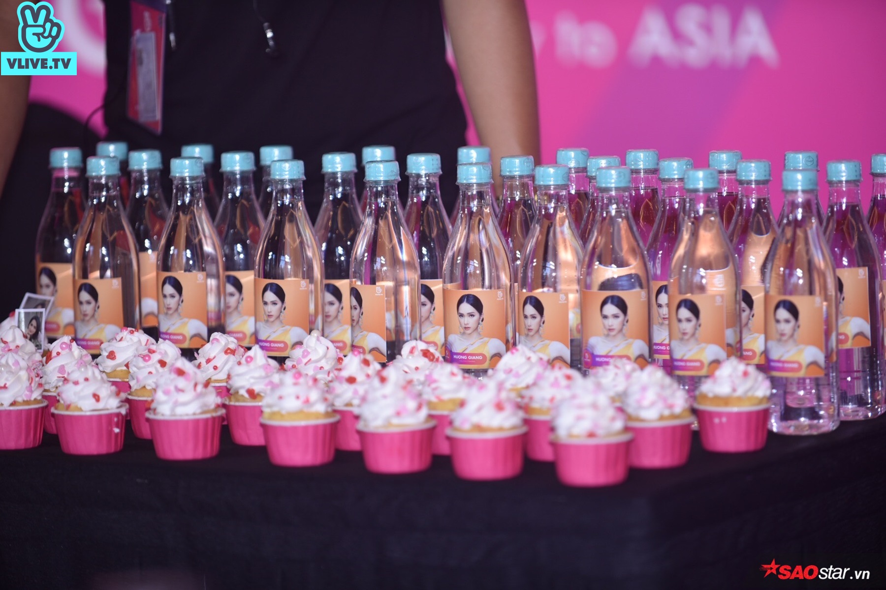 Hình ảnh những chiếc bánh cupcake và chai nước được Hương Giang chuẩn bị sẵn.