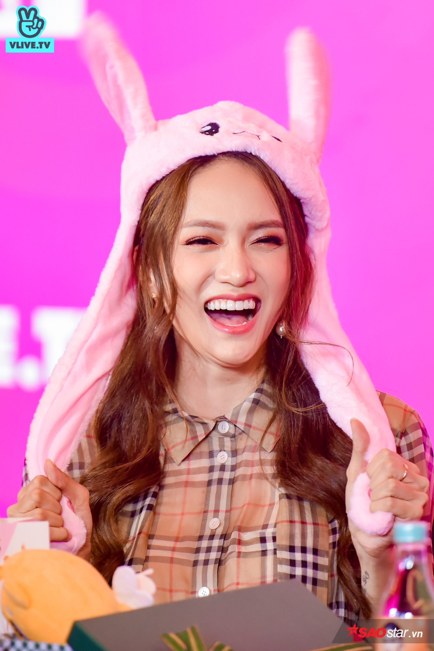 Sự rạng rỡ, thân thiện và dễ thương của Hương Giang dễ dàng khiến bất cứ ai đứng trước mặt cô đều có thể… “trụy tim”. Cứ mỗi fan có cơ hội được lại gần nữ ca sĩ, cô đều tận tình hỏi thăm sức khỏe cũng như dành từng cái ôm thật tình cảm cho họ.