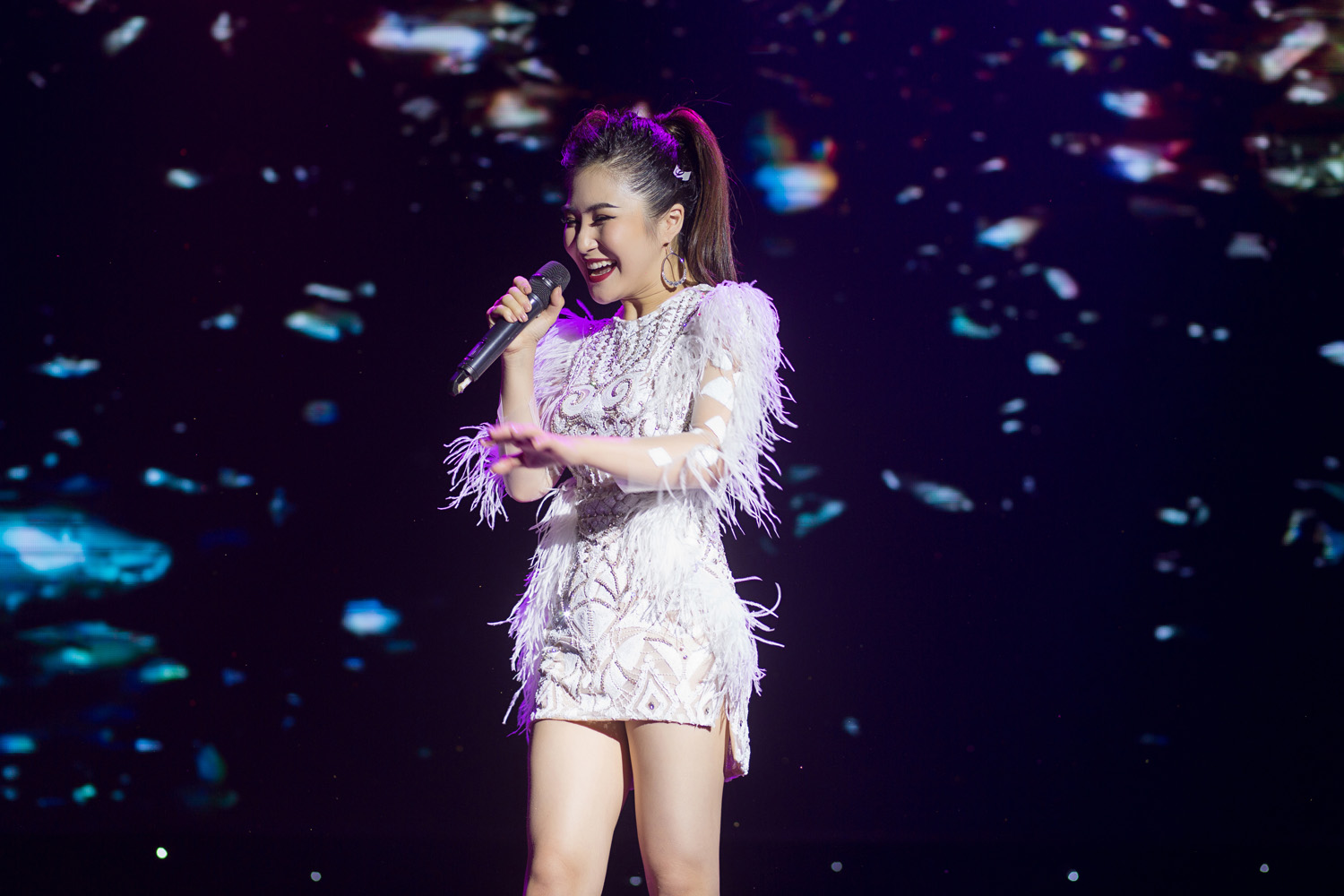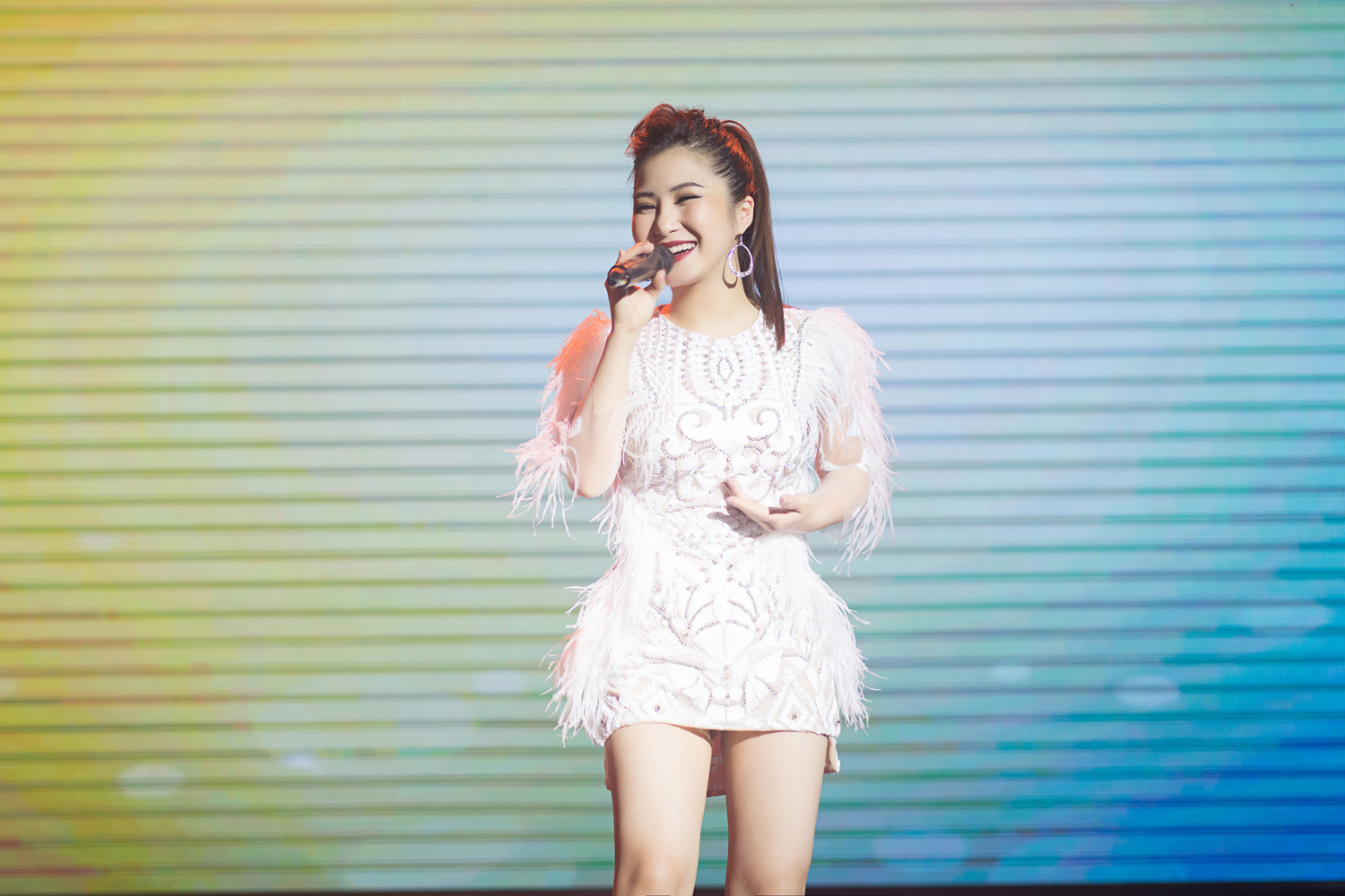 Mới đây, Hương Tràm tiếp tục khuấy động sân khấu bằng hình ảnh tràn đầy năng lượng trong chiếc váy trắng tinh khôi.