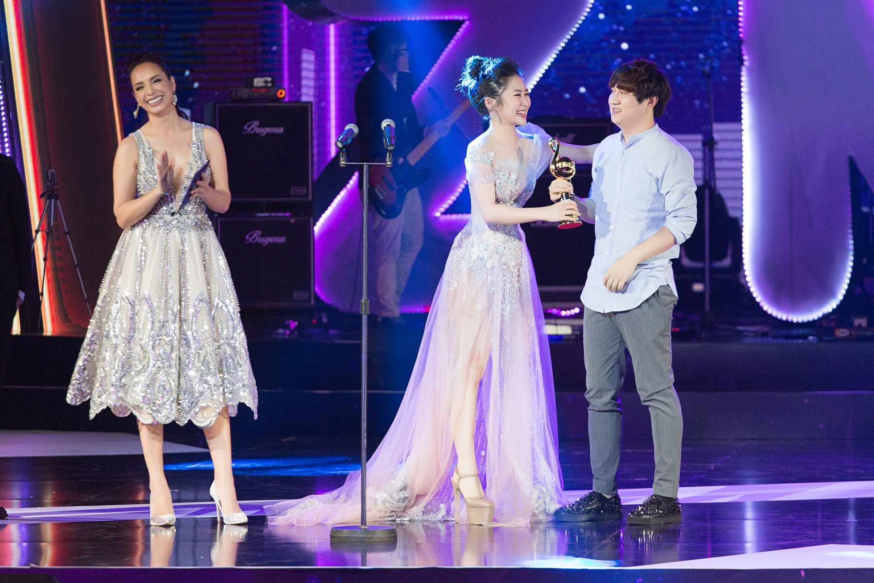 Nổi bật tại sự kiện, Hương Tràm đã xuất sắc giành “đại thắng” khi nhận về 2 giải thưởng Ca khúc pop/ballad được yêu thích và Nữ ca sĩ được yêu thích. Trong lúc được vinh danh ở hạng mục Ca khúc pop/ballad được yêu thích, giọng ca Em gái mưa đã cùng lên sân khấu nhận giải với “cha đẻ” bản hit - nhạc sĩ Mr. Siro.