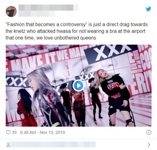 “Thời trang trở thành tranh cãi”. Đây chắc chắn là cách Hwasa đáp trả những Knets từng tấn công cô nàng bởi tranh cãi không mặc bra ở sân bay