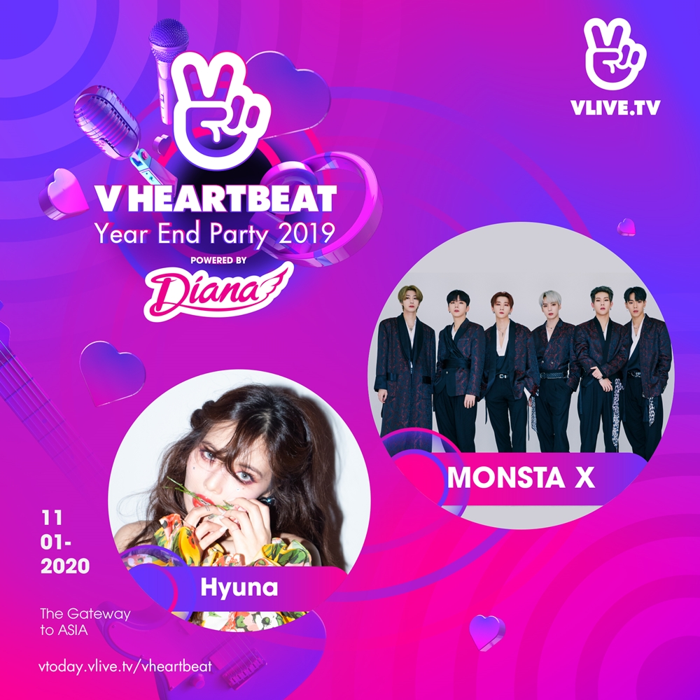 V Heartbeat Year End Party 2019 Powered By Diana sẽ được tổ chức vào ngày 11/1/2020 tại một sân khấu vô cùng ấn tượng, tại thành phố Hồ Chí Minh. Sự kiện được phát sóng trực tiếp, độc quyền trên Vlive. Theo dõi page Diana và Vlive để nhận thông tin đăng ký vé miễn phí.