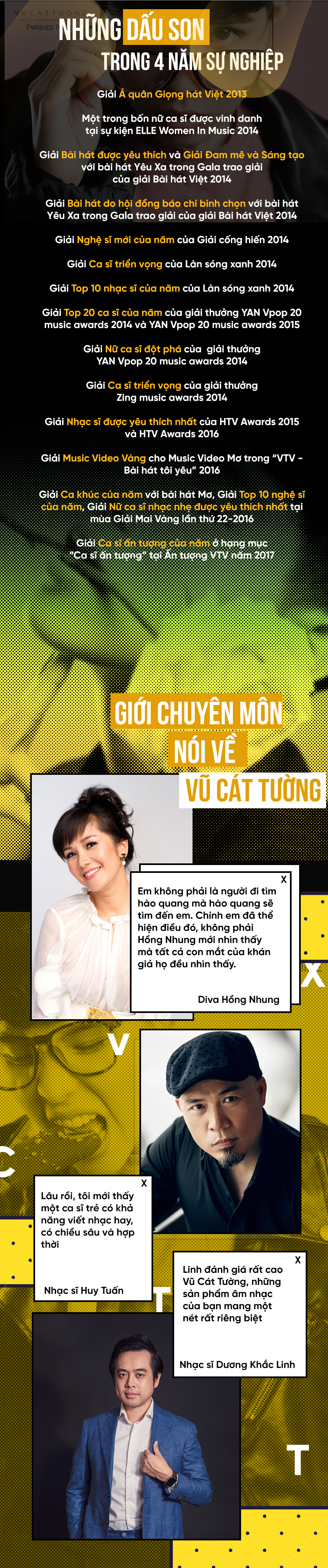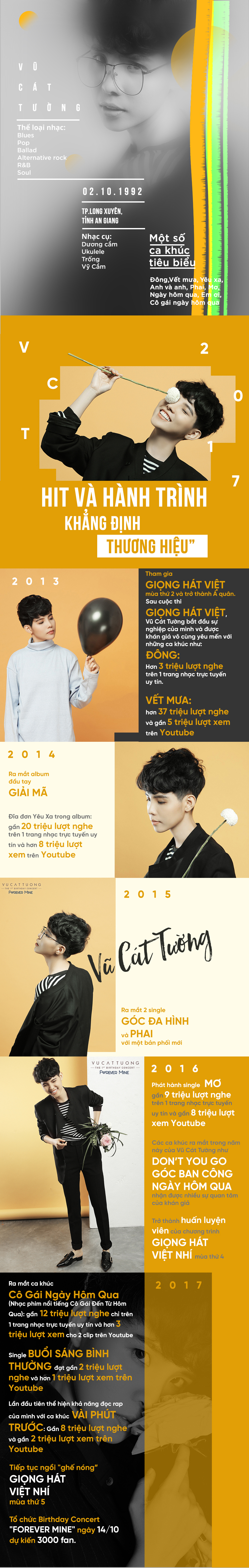 4 năm không phải là một quãng thời gian quá dài, nhưng đủ để cho Vũ Cát Tường ghi dấu ấn đậm nét của mình ở làng nhạc Việt. Và chúng ta chần chờ gì mà không cùng nhau nhìn lại những “dấu son” trên hành trình khẳng định chính mình của “thương hiệu” Vũ Cát Tường.