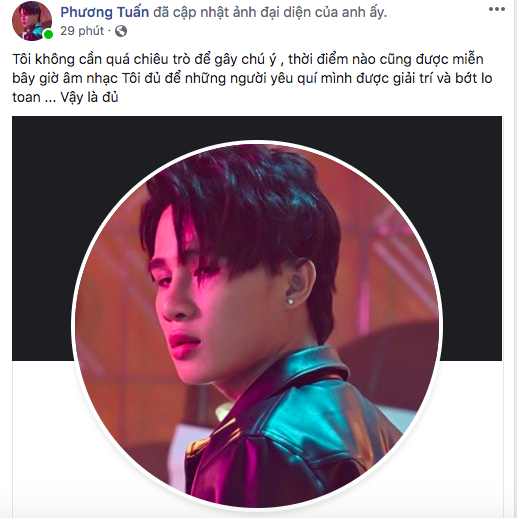 Ở một diễn biến khác, trên trang cá nhân của Jack cũng đã thay đổi hình ảnh đại diện cùng caption tương đối “deep” trước thềm ngày trở lại. Anh nói: “Tôi không cần quá chiêu trò để gây chú ý , thời điểm nào cũng được miễn bây giờ âm nhạc Tôi đủ để những người yêu quí mình được giải trí và bớt lo toan … Vậy là đủ”.