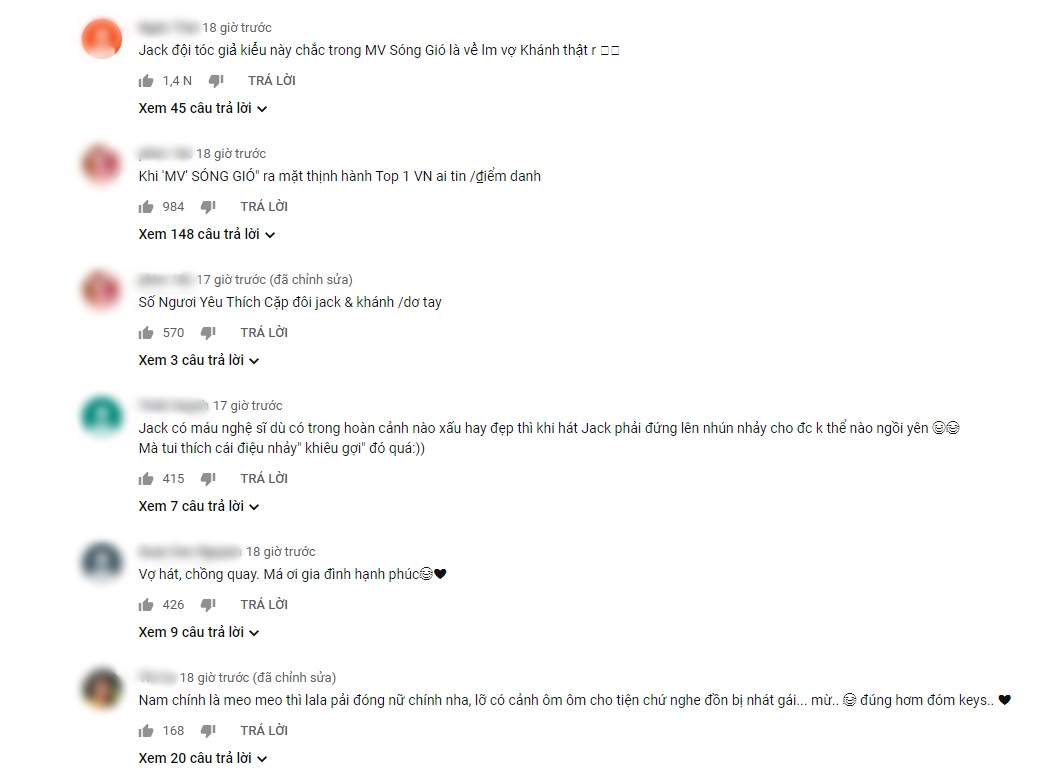 Bên cạnh đó, trong đoạn clip hậu trường này, các fan cũng tỏ ra khá bất ngờ với… mái tóc giả của Jack. Với sự “hủ nữ” của nhiều fan girl, một kịch bản nhanh chóng được đặt ra đó chính là: Jack để tóc dài để hóa thân thành…. vợ của K-ICM. Dù chỉ là dự đoán “troll” khá hài hước nhưng nhiều ý kiến cũng rất tò mò về câu chuyện trong MV Sóng gió mà hai chàng trai đem tới.
