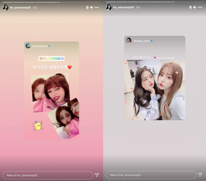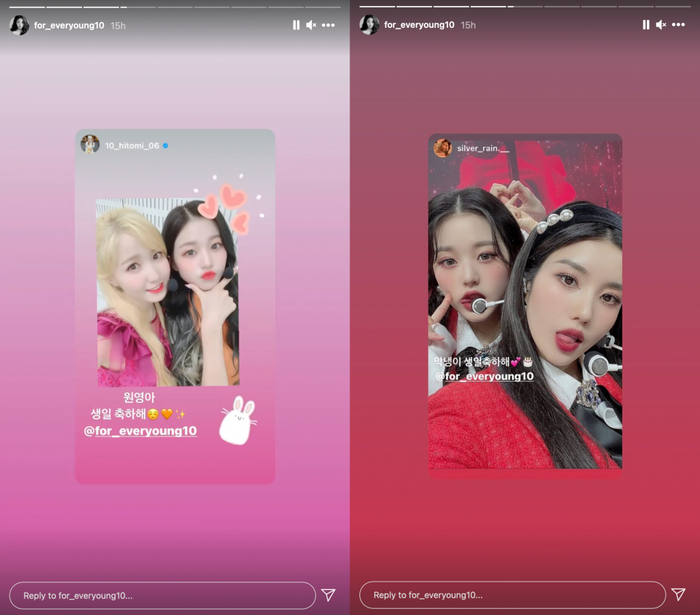 Trái với cảm giác lo lắng của nhiều người hâm mộ khi Wonyoung phải đón tuổi mới một mình trong phòng cách ly, những tin nhắn chúc mừng của Ahn Yu Jin, Yabuki Nako, Honda Hitomi, Kwon Eun Bi, Choi Ye Na và Miyawaki Sakura đều vô cùng đáng yêu.