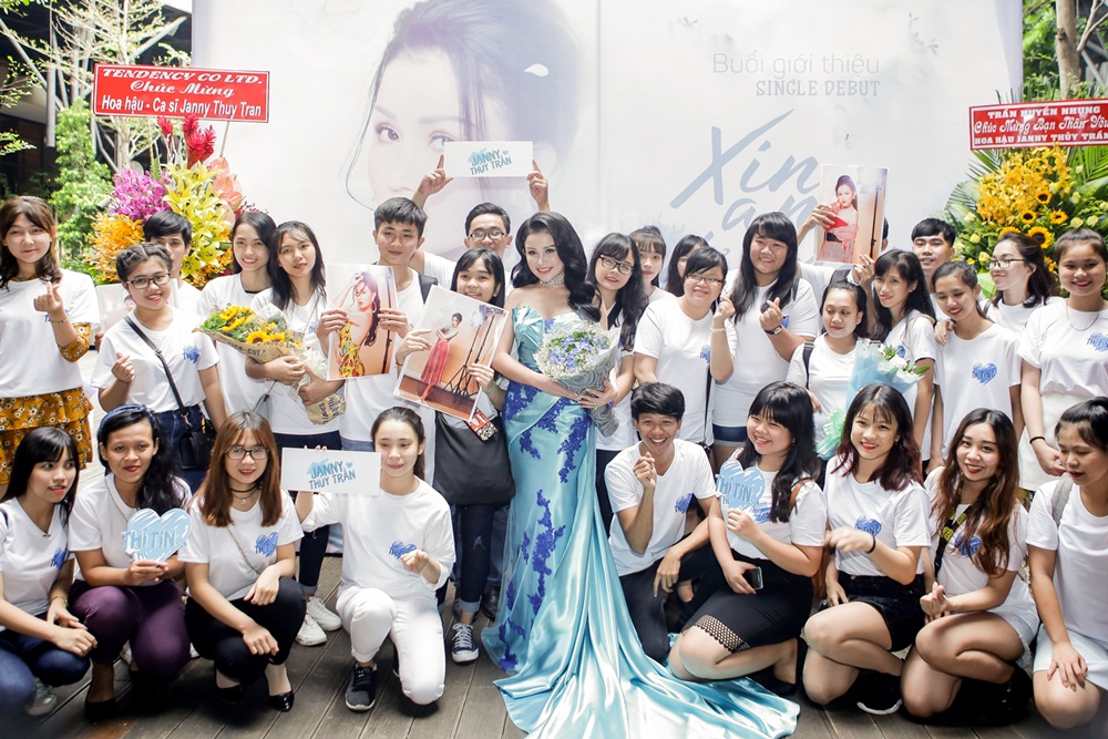 Chiều 27/10, Hoa hậu Phu nhân Việt Nam Hoàn cầu 2016 Janny Thủy Trần đã có màn ra mắt trong vai trò mới, giới thiệu tới giới truyền thông và khán giả MV Xin Anh Để Em Đi, cũng là tên single đầu tay của cô.