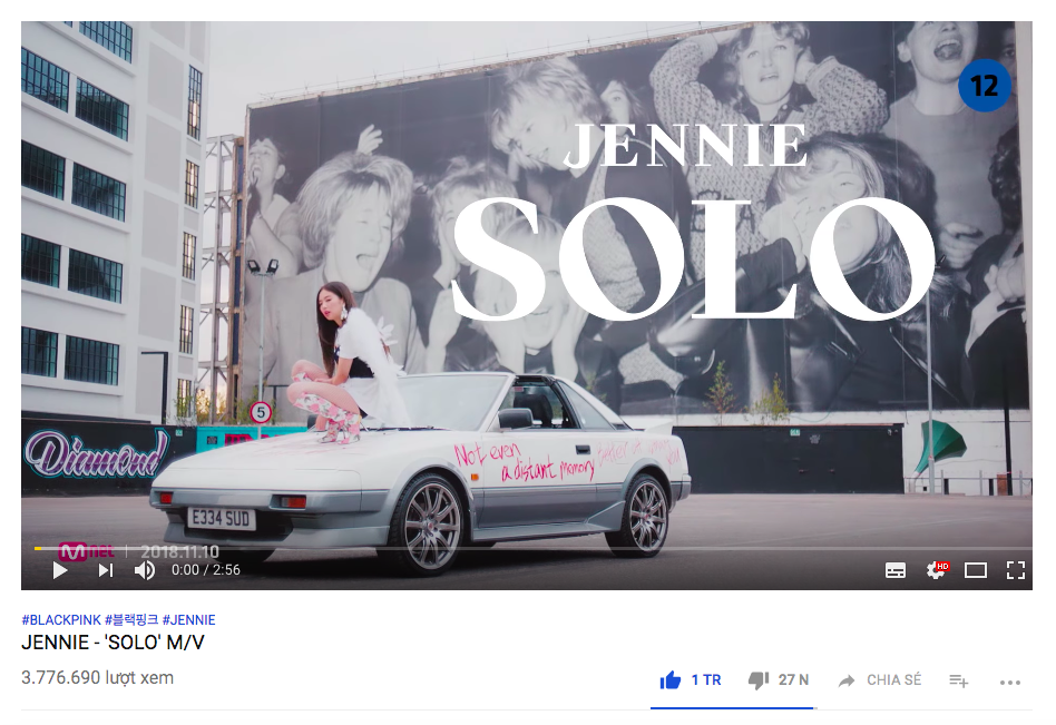 Đặc biệt, dù chỉ “đánh lẻ” chưa đầy 5 tiếng, thế nhưng cô nàng đã làm được điều mà chưa từng có một nữ nghệ sĩ nào làm được: SOLO cán mốc 1 triệu lượt like chỉ sau 4 giờ 57 phút phát hành, đây là thời gian ngắn nhất từng được ghi nhận với một nghệ sĩ solo nữ. Đồng thời, giúp Jennie lọt top 4 nghệ sĩ sở hữu MV đạt 1 triệu lượt like nhanh nhất từng được ghi nhận trong lịch sự ngành âm nhạc Hàn Quốc (sau Singularity của V, Daydream của J-Hope và MIC Drop của BTS).
