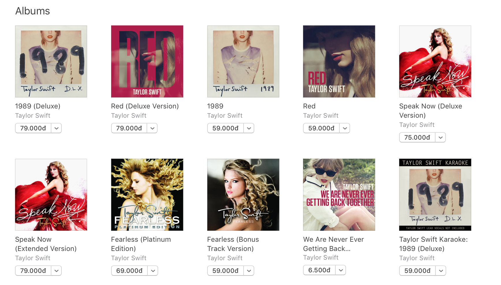 Lần lượt nhiều album của Taylor đồng loạt giảm giá. Hiện tại, fan đã có thể mua với giá dễ chịu hơn nhiều. Chẳng ra sản phẩm, #TaylorSwift vẫn chiếm đến 52 nghìn tweets ngày hôm nay.
