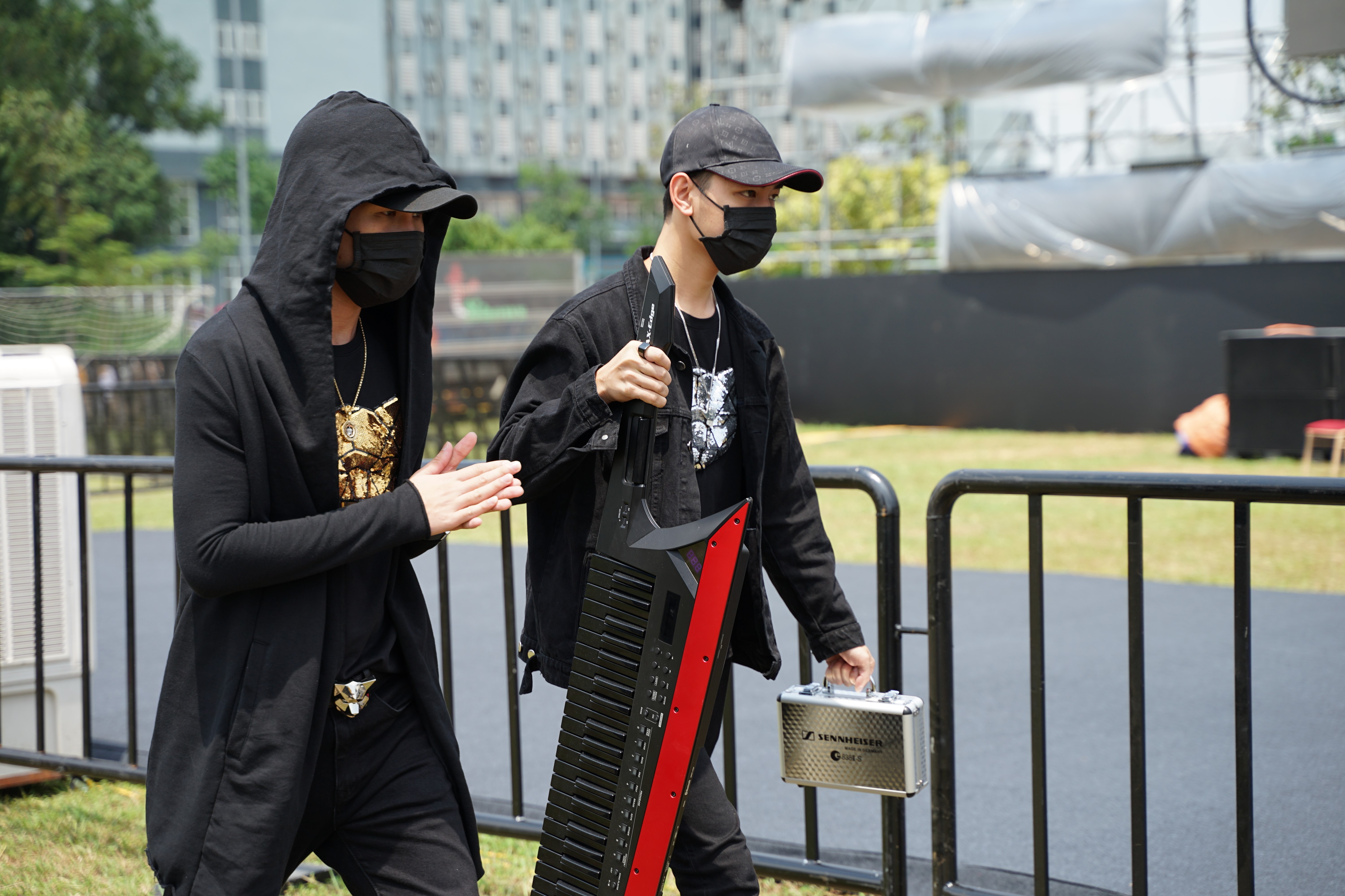 Cặp đôi Jack- KICM diện cả cây đen đến tham dự buổi tổng duyệt trưa nay