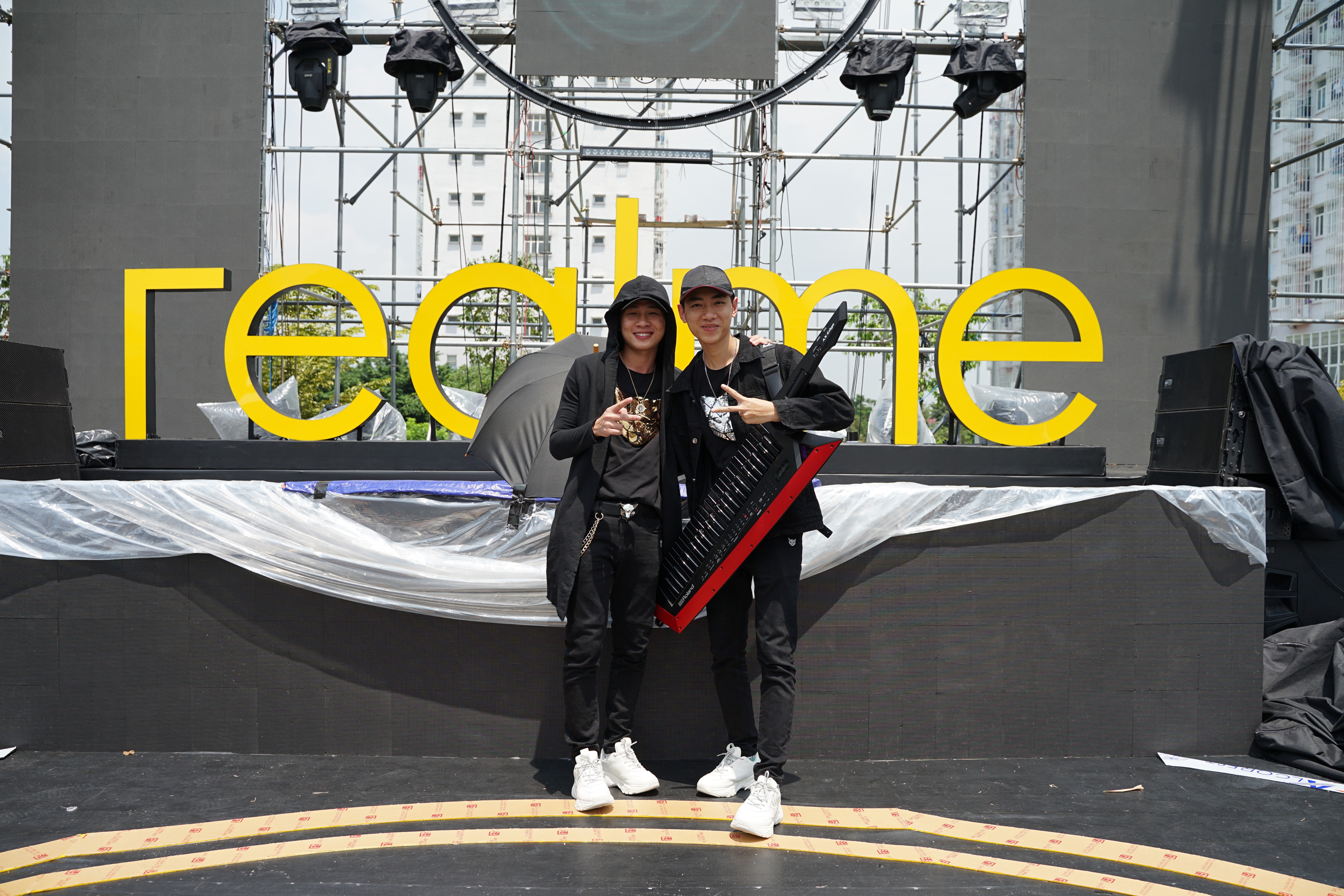 Sau đó, cả 2 tiến về khu vực trải nghiệm để test thử máy Realme và chụp ảnh cùng nhau.