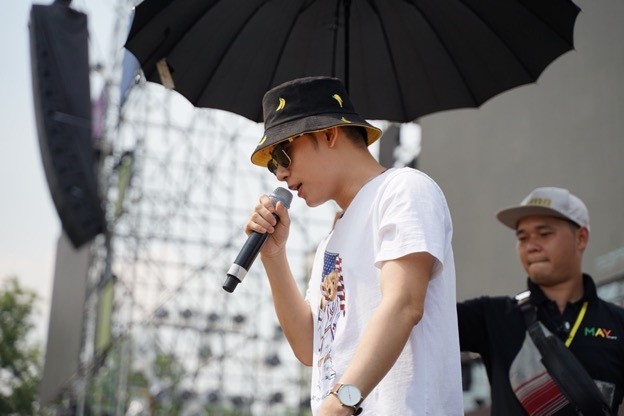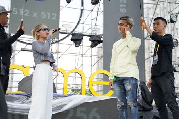 DJ Masew cũng có mặt từ sớm để tổng duyệt, sau đó anh chàng đã cùng MC Tuyển Tăng giao lưu trải nghiệm cùng với fan tại quầy.