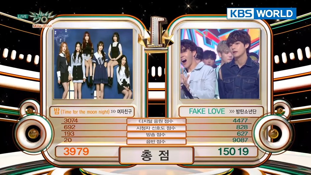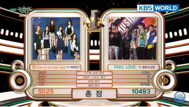 Chỉ mới tuần trước, Fake Love đã trở thành ca khúc đạt số điểm cao nhất Music Bank tính từ đầu năm 2018.
