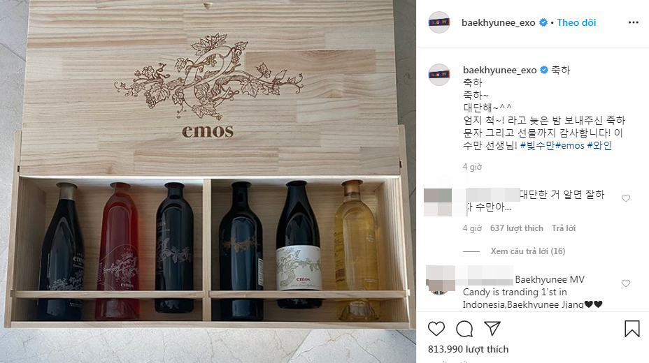 Cụ thể mới đây, trên trang cá nhân của mình, Baekhuyn bất ngờ đăng tải hình ảnh món quà đặc biệt từ thầy Lee Soo Man với nội dung: “Cảm ơn thầy vì những tin nhắn chúc mừng, đêm khuya và món quà từ thầy Lee Soo Man”. Ngay lập tức, bài đăng đã nhận được nhiều phản ứng thích thú từ khán giả và các fan hâm mộ. Nhiều người cho rằng anh chàng quả thực là học trò cưng của Lee Soo Man.