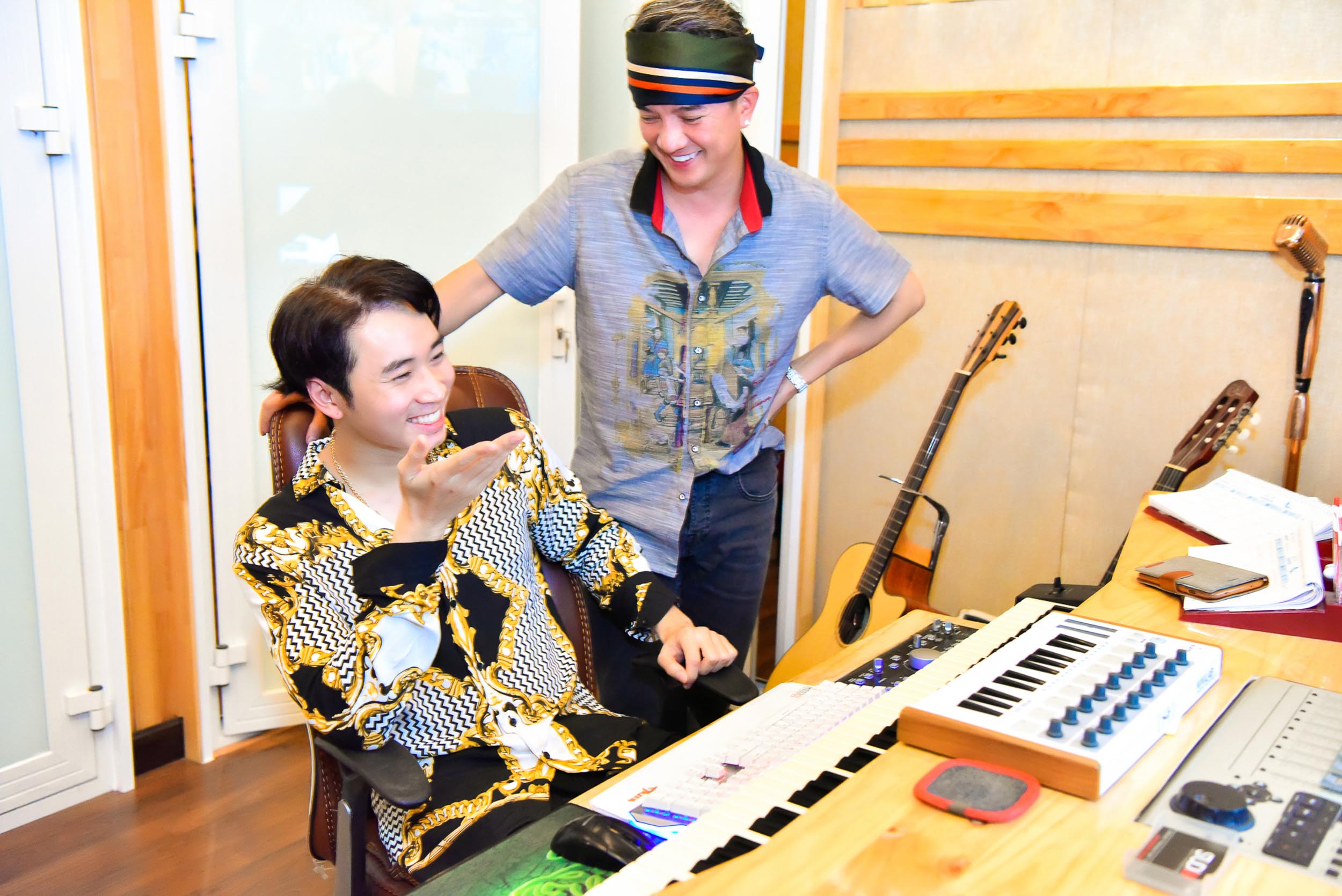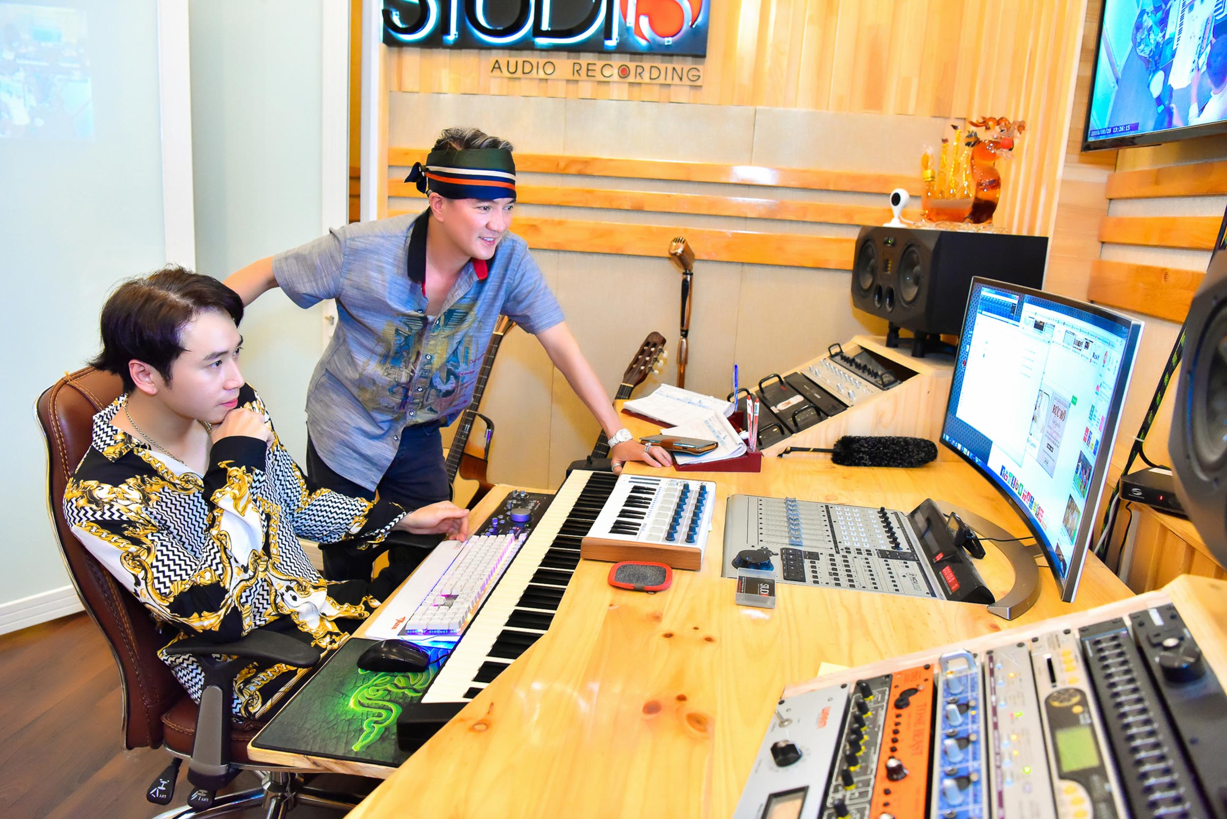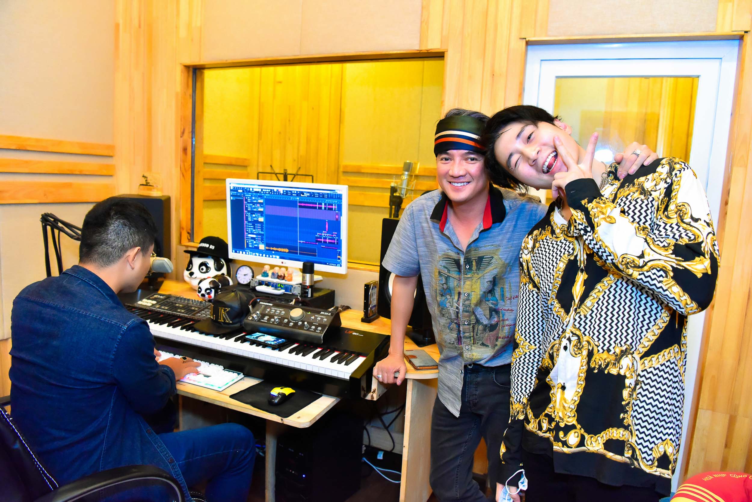 Đàm Vĩnh Hưng và Karik vô cùng thân thiết trong phòng thu.