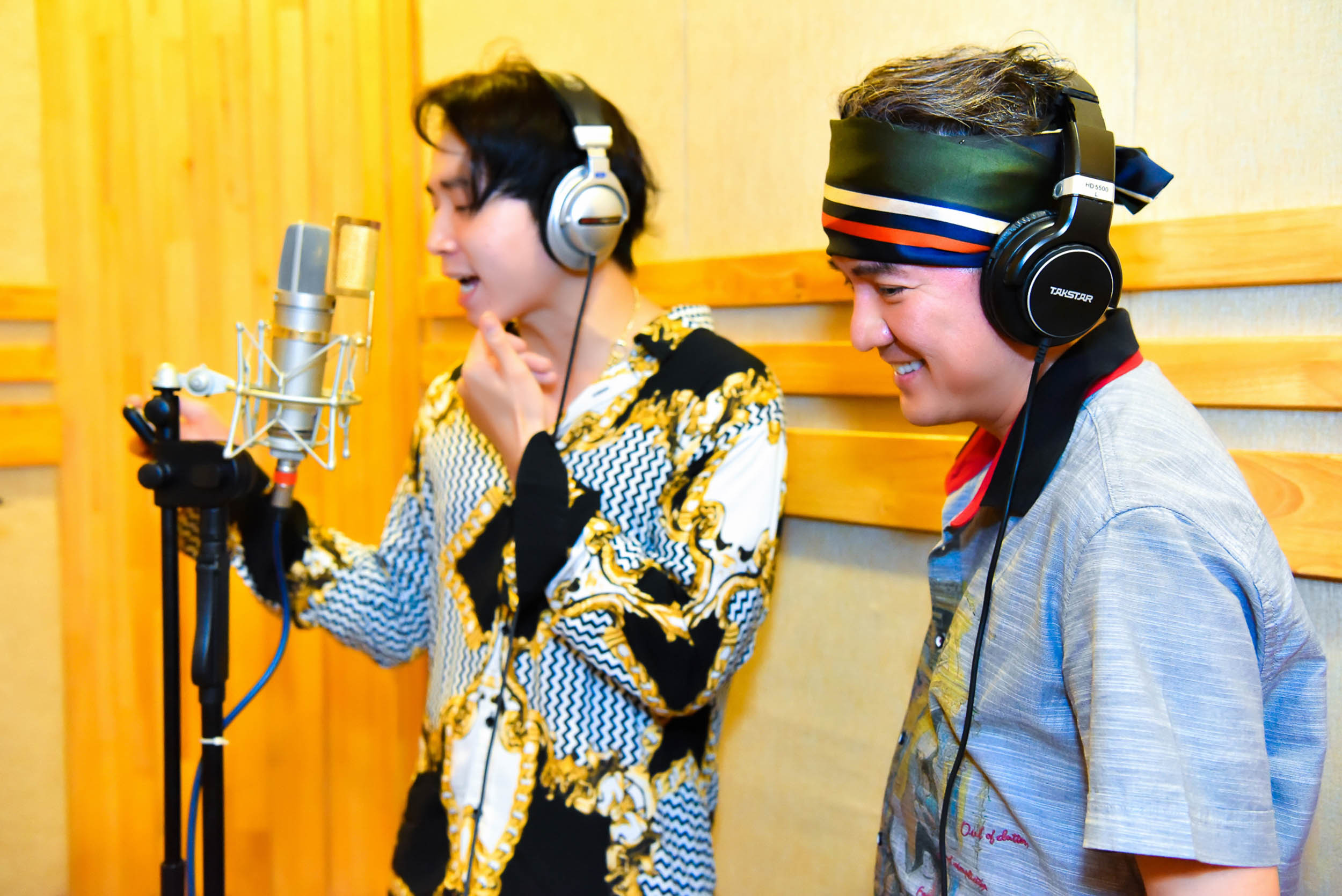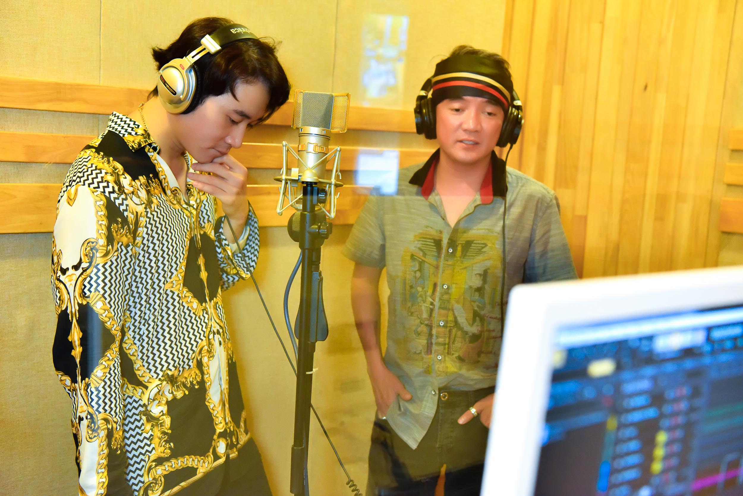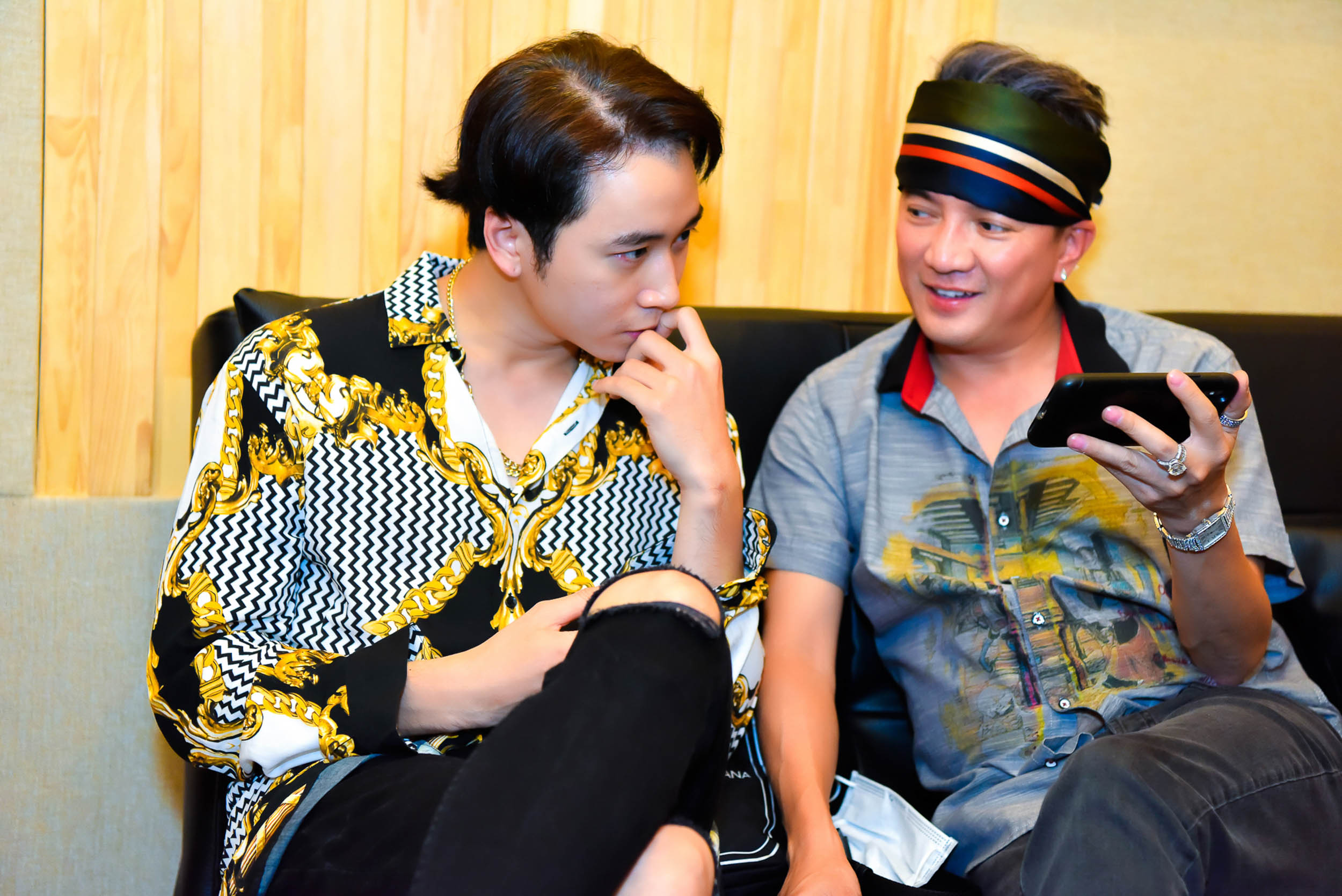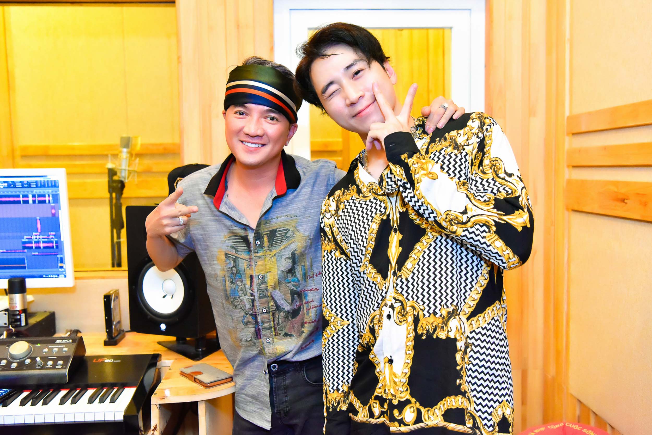 Đàm Vĩnh Hưng và Karik vô cùng thân thiết trong phòng thu.
