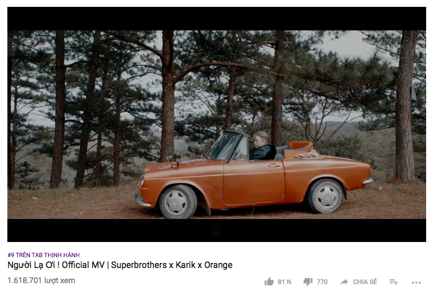 Chưa đầy một ngày ra mắt, MV Người lạ ơi đã cán mốc 1 triệu lượt xem, lọt top trending Youtube.