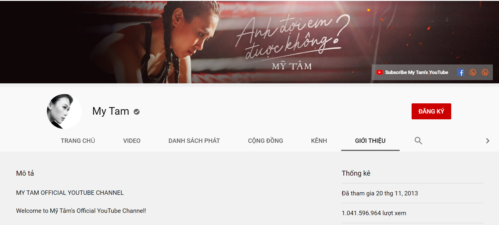 Tuy nhiên, có một điều khán giả luôn đặt dấu hỏi cho Mỹ Tâm chính là việc kênh Youtube của nữ ca sĩ không công khai lượng người đăng ký. Dựa vào số lượt xem khổng lồ các MV cộng lại, nhiều người đoán rằng lượng subscribe Youtube của Mỹ Tâm chắc chắn không phải dạng vừa. Và mới đây, thắc mắc từ khán giả bất ngờ được giải đáp.