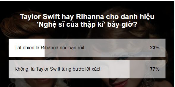 Theo kết quả bình chọn, Taylor Swift bỏ xa Rihanna với tỉ số phần trăm 77/23. Đó thật sự là một kết quả không quá bất ngờ, hãy cùng tìm hiểu lí do vì sao không bất ngờ gì nhé!
