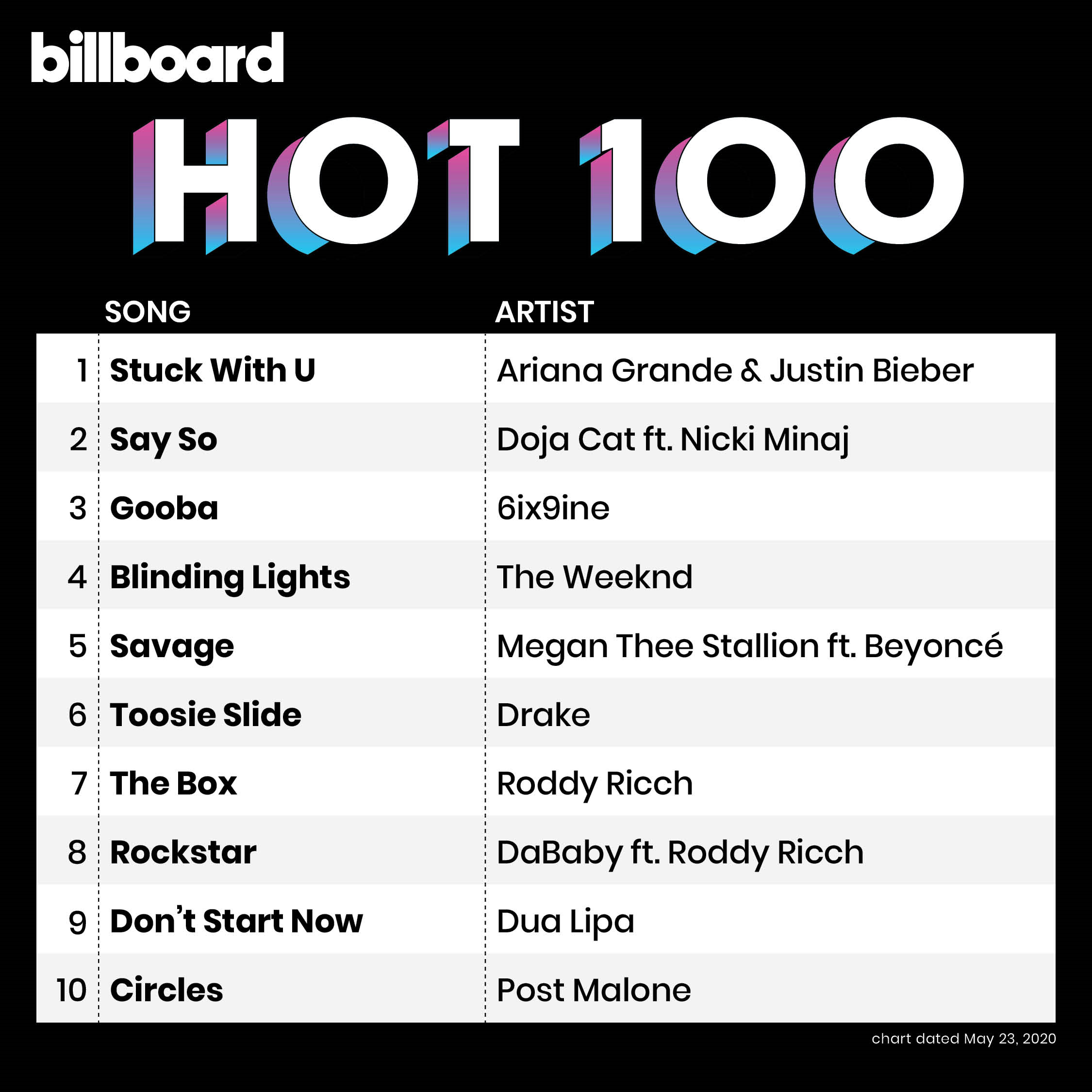 Bên cạnh Stuck With U, những ca khúc như Gooba - 6ix9ine và Rockstar - DaBaby Ft. Roddy Ricch đã có biểu hiện tương đối khả quan so với tuần vừa qua: thăng hạng hoặc giữ nguyên vị trí sau một tuần. Ngược lại thì Say So - Doja Cat & Nicki Minaj, Blinding Lights - The Weeknd, Savage - Megan Thee Stallion & Beyonce, Toosie Slide - Drake, The Box - Roddy Ricch và Circles - Post Malone đã tuột 1 hạng hoặc hơn so với tuần trước.
