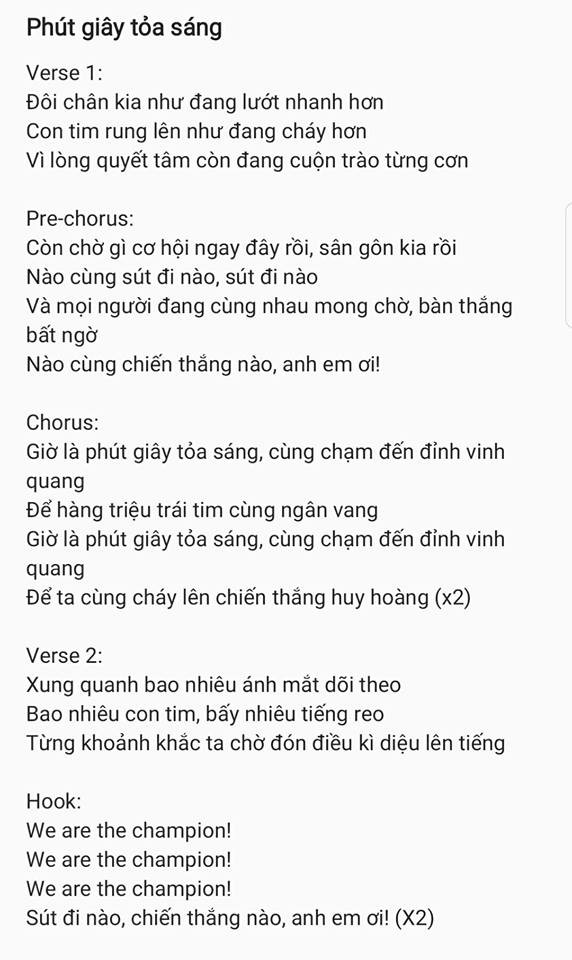 Phút giây tỏa sáng mang giai điệu cuồng nhiệt, sôi nổi và trẻ trung, với thông điệp cổ vũ cho ước mơ bay cao của những người trẻ. Ở thời khắc mà mỗi bước đi đều có thể làm nên lịch sử, chúng ta hãy cùng hát vang ca khúc này để cổ vũ cho đội tuyển U23 Việt Nam!