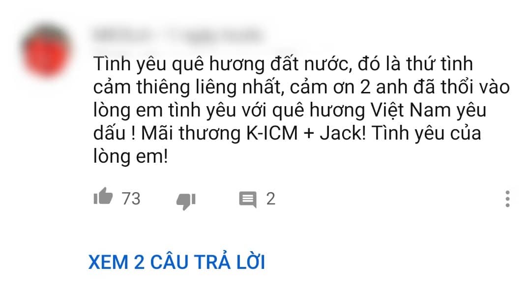 Có thể nói với Việt Nam Tôi, một lần nữa K-ICM và Jack cho thấy năng lượng hừng hực cũng như tốc độ ra sản phẩm ầm ầm của bộ đôi này. Mỗi dự án ra mắt đều ghi dấu ấn mạnh mẽ và đạt những con số “khủng khiếp” về lượt xem MV cũng như số liệu digital trên BXH âm nhạc trực tuyến. Nhưng quan trọng nhất vẫn là những tình cảm tuyệt vời mà khán giả cũng như người hâm mộ dành cho bộ đôi tài năng này, để đó sẽ là nguồn động lực to lớn giúp K-ICM và Jack ngày càng tiến xa hơn.