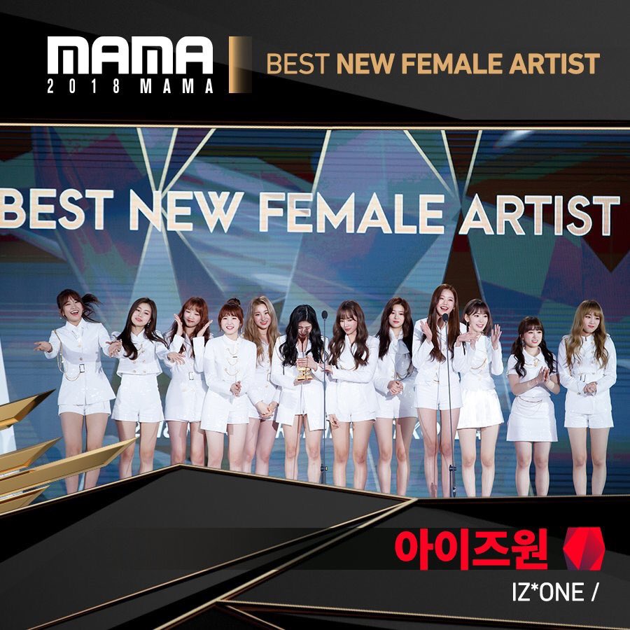 Xuất hiện và trình diễn trong sự kiện, nhóm nhạc nữ IZ*ONE cũng là cái tên được xướng lên ở hạng mục Best New Female Artist. Lần đầu được vinh danh tại một đấu trường âm nhạc lớn mang tầm cỡ châu lục, các cô gái tỏ ra bất ngờ, vui sướng đến bật khóc khi bước lên sân khấu nhận giải.