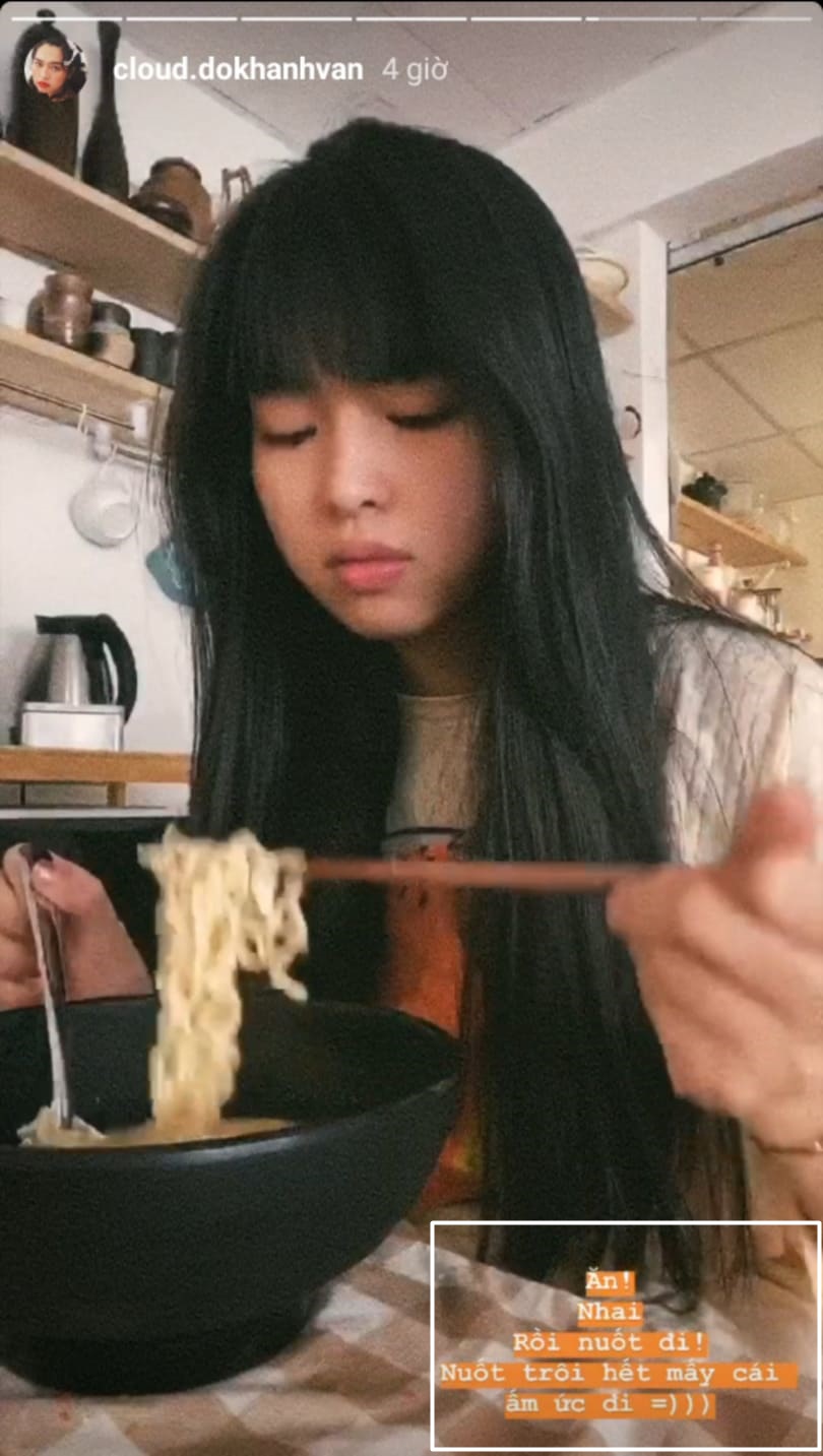 Cũng trong một đoạn clip story gần đây, Khánh Vân chia sẻ hình ảnh đang ăn mì gói cùng với dòng caption đầy ẩn ý: “Ăn! Nhai! Rồi nuốt đi! Nuốt trôi hết mấy cái ấm ức đi“. Chính điều này đã khiến dân mạng đồn đoán rằng Khánh Vân đang phải chịu quá nhiều áp lực sau khi chia sẻ những hình ảnh cùng Jack lên mạng xã hội, dù cô nàng từng nhiều lần khẳng định không có ý gì sâu xa. Mặc dù Khánh Vân không trực tiếp nêu rõ nguyên nhân, thế nhưng dân mạng gần như đã chắc chắn hơn 90% cho phỏng đoán của mình về việc cô nàng xóa sạch loạt ảnh kia.